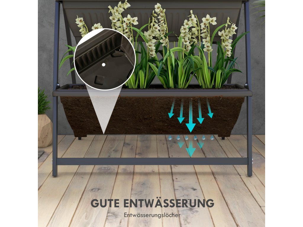 - ✔ Ocelový rám a plastové nádoby jsou vhodné pro venkovní použití