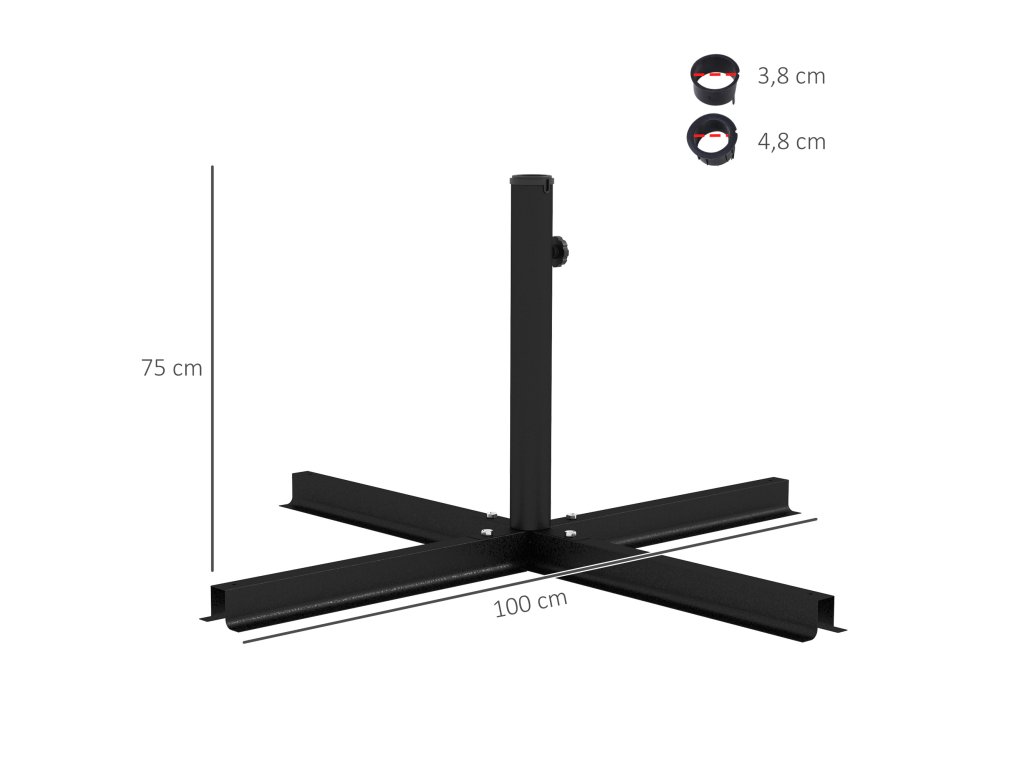Stojan na slunečník Outsunny 4 kg křížový stojan na konzolový slunečník Ø38 až 48 mm, robustní držák slunečníku v černé barvě 100 x 100 x 75 cm |