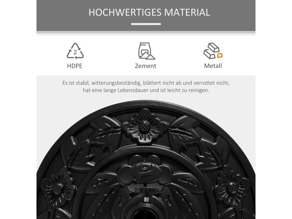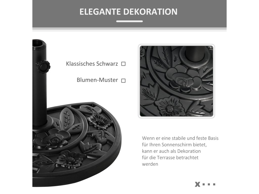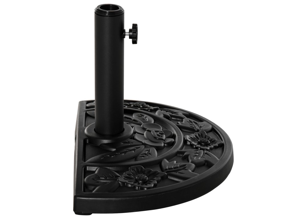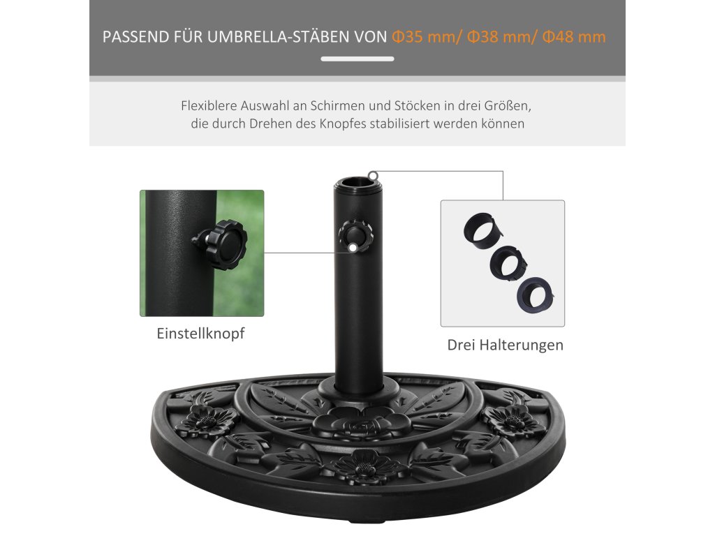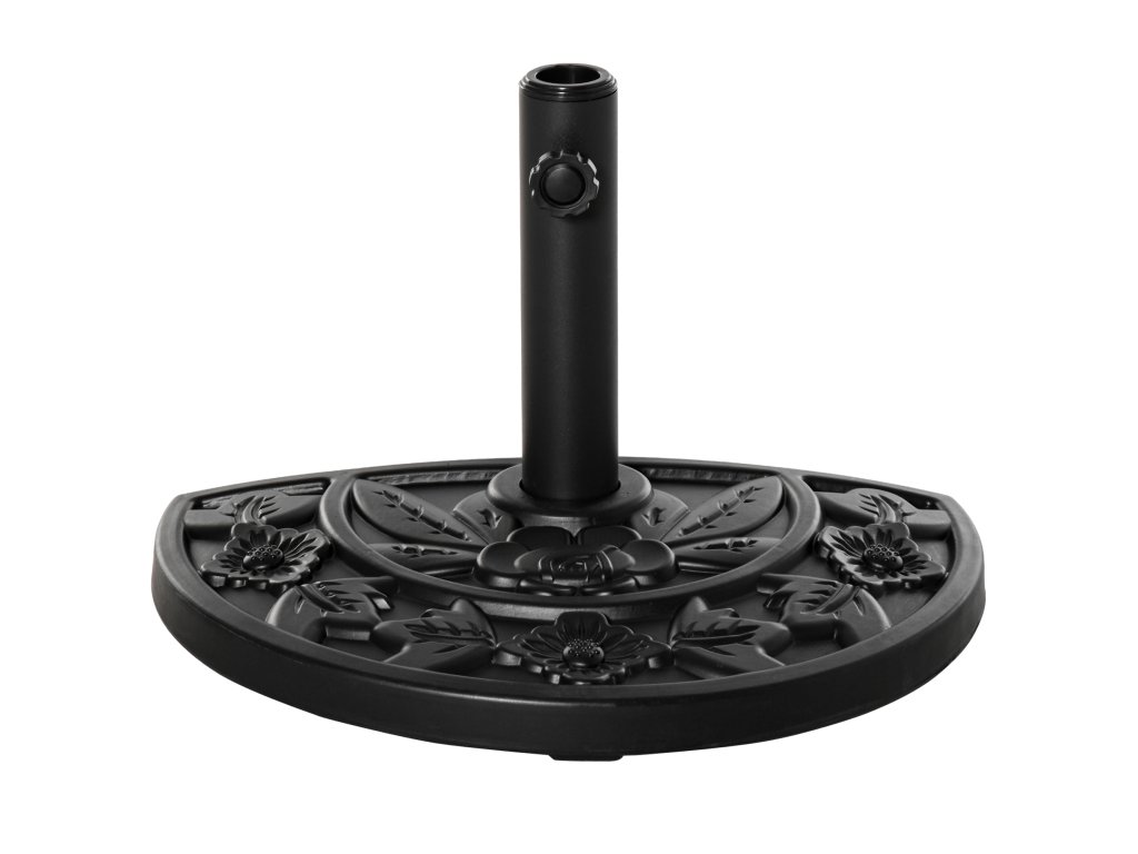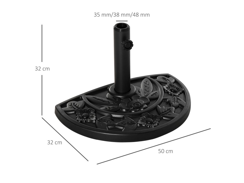 Stojan na slunečník Outsunny 9kg podstavec na zahradní slunečník s motivem květin pro tyče slunečníku Ø35/38/48 mm, HDPE, půlkruhový, černý | Aosom.de