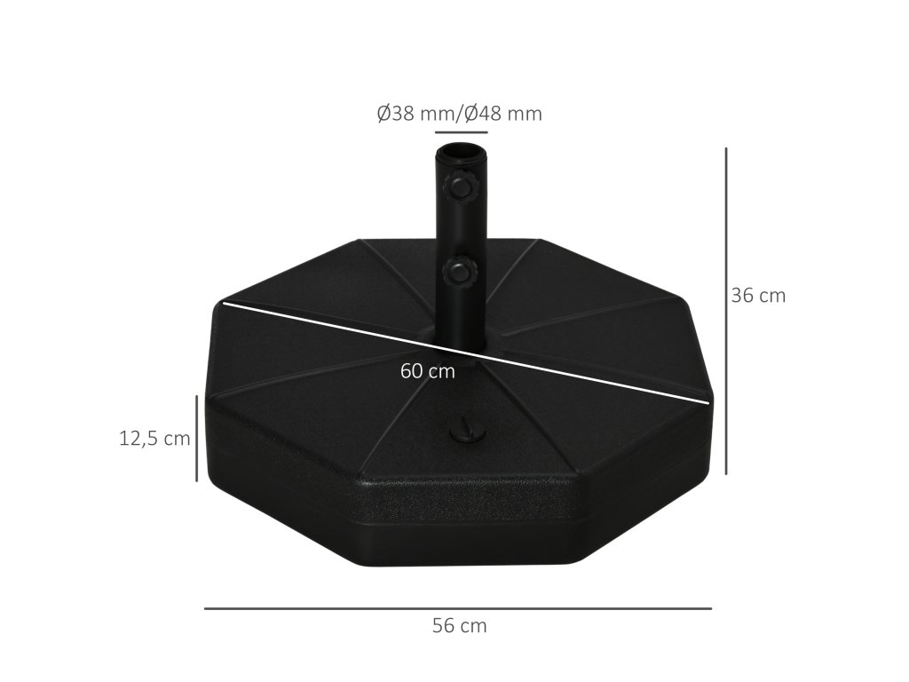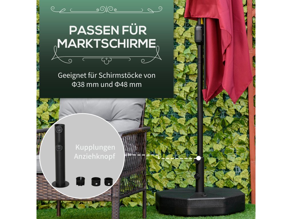 - ✔ Hmotnost podstavce slunečníku je vhodná pro zahradní slunečníky o průměru tyče 38 mm a 48 mm