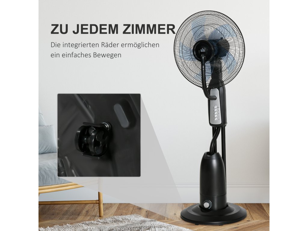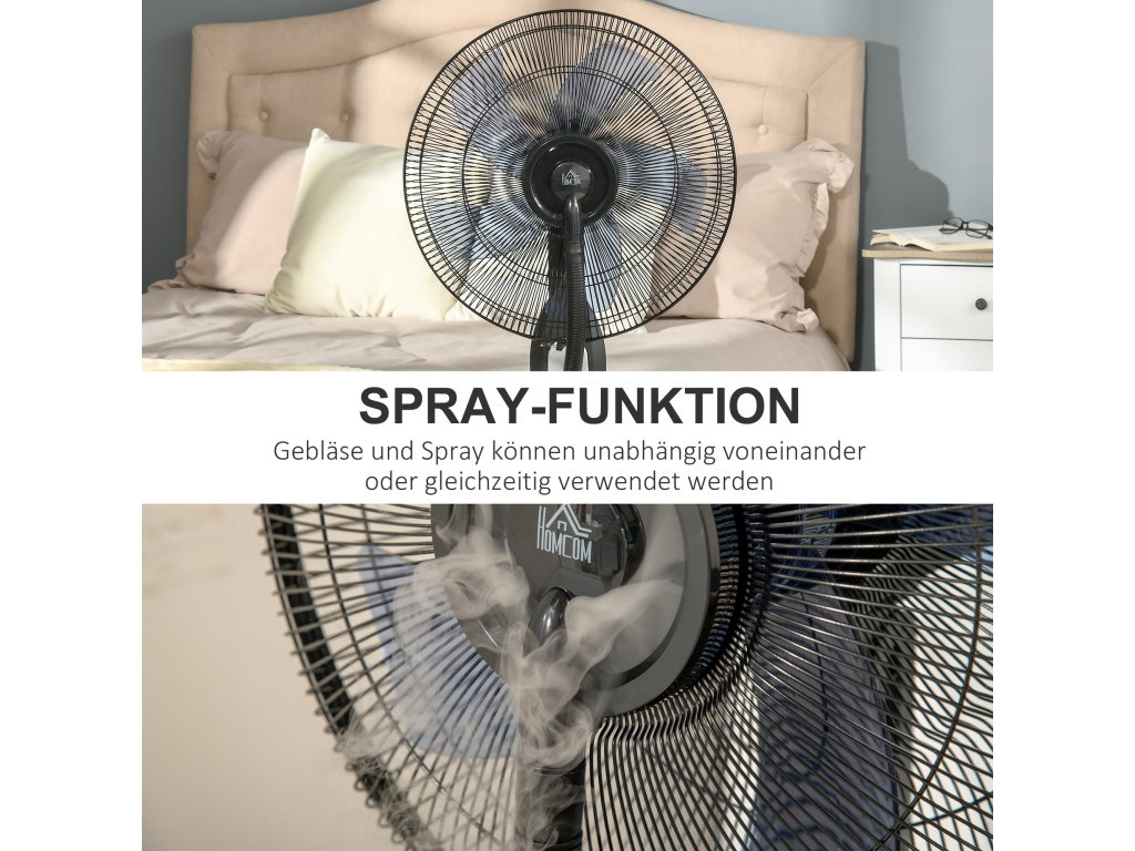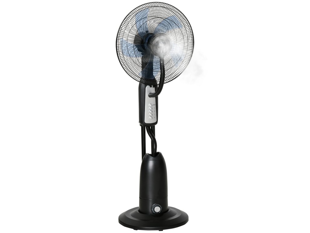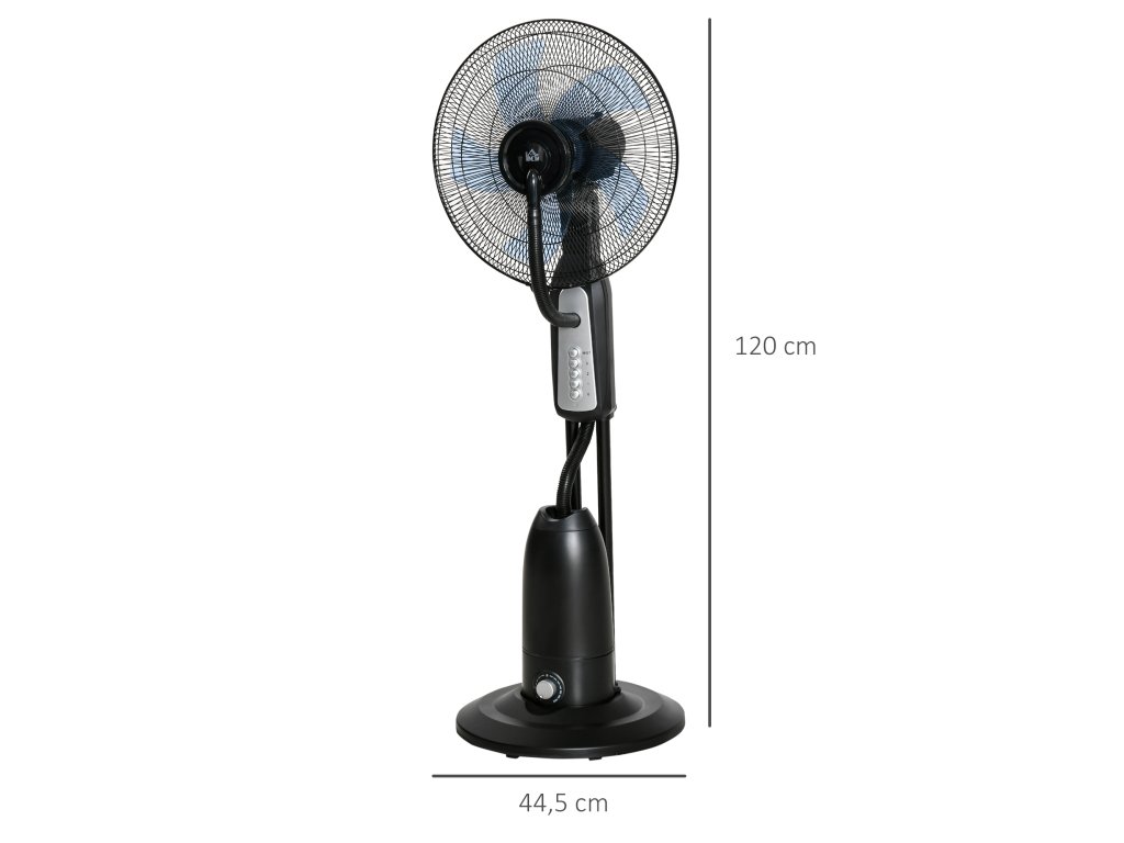 Stojanový ventilátor HOMCOM s rozprašovačem vody 2.8l, funkce mlhy, nastavitelný úhel sklonu, kov, výška 120cm pro chladivé osvěžení | Aosom.de