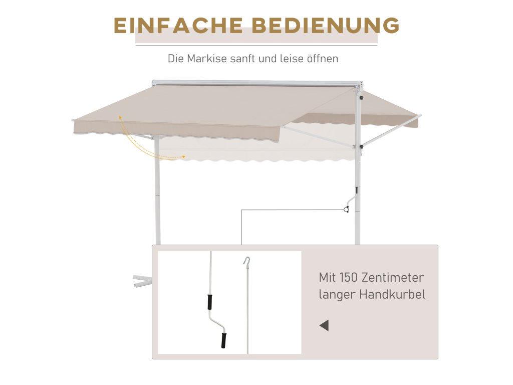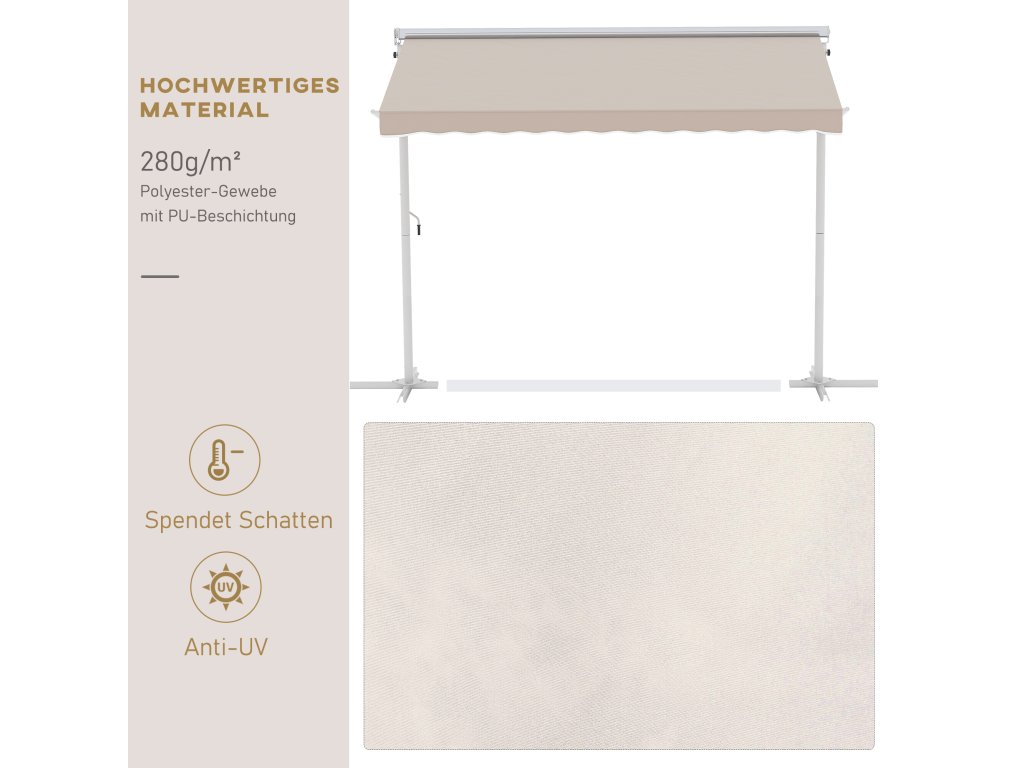 Stojící zahradní markýza Outsunny 3x3m se sklopným ramenem a klikou, béžová, ideální na terasu a zahradu | Aosom.de