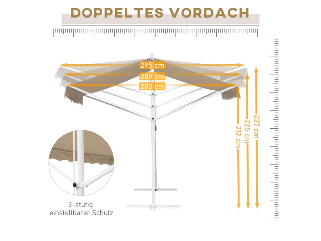 - ✔ Stojící markýza pro zajištění stínu na zahradě, dvoře, terase a dalších venkovních plochách
