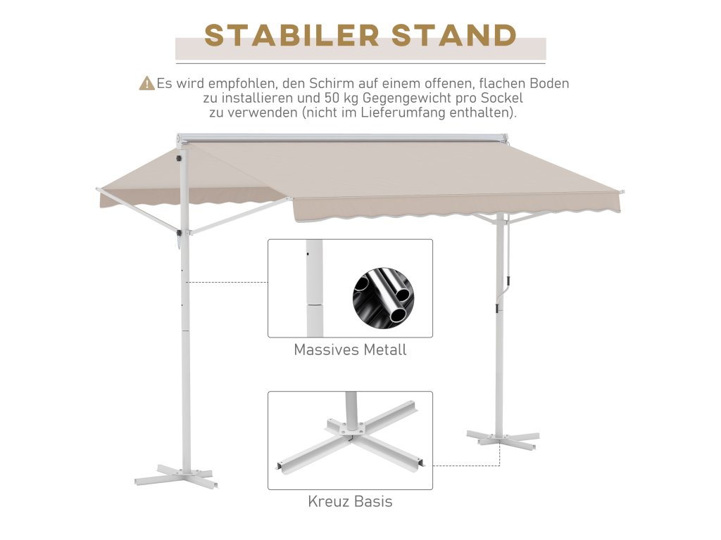 - Vysoce kvalitní volně stojící markýza: Flexibilního poskytovatele stínu můžete ideálně postavit na zahradě nebo na terase.