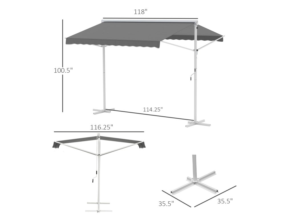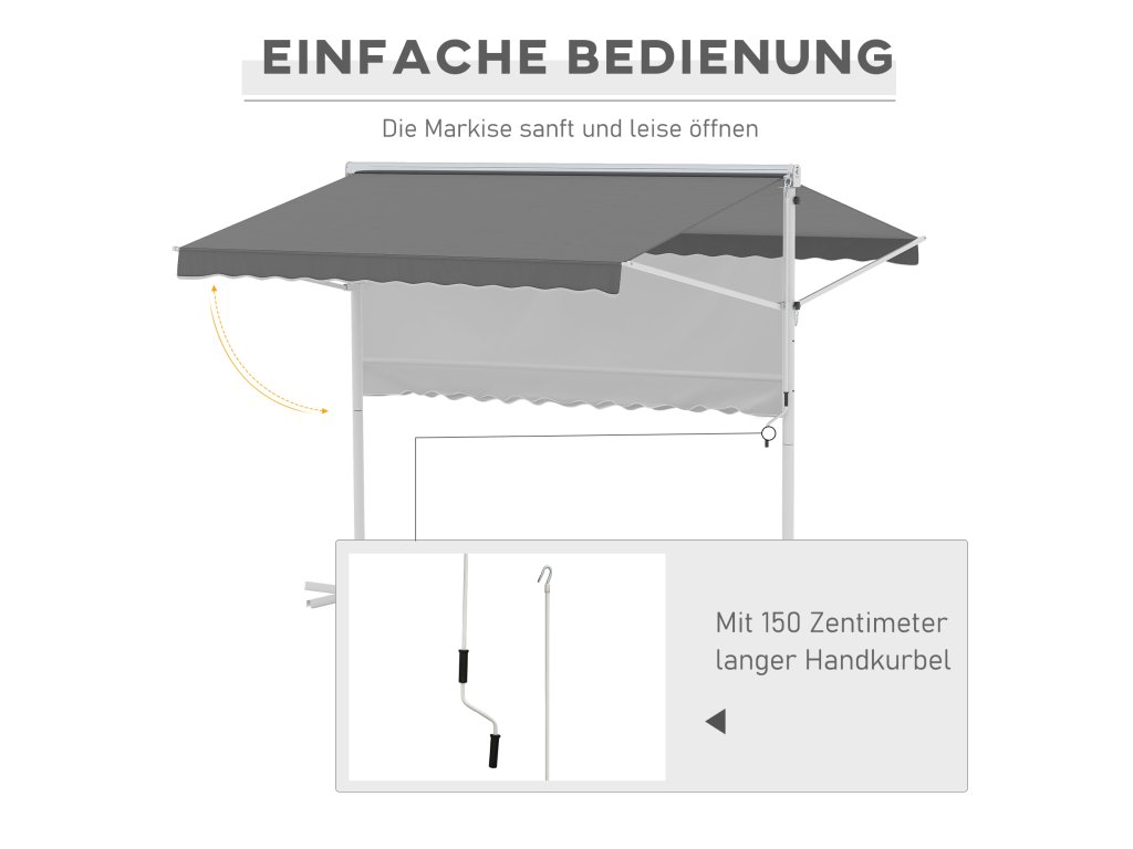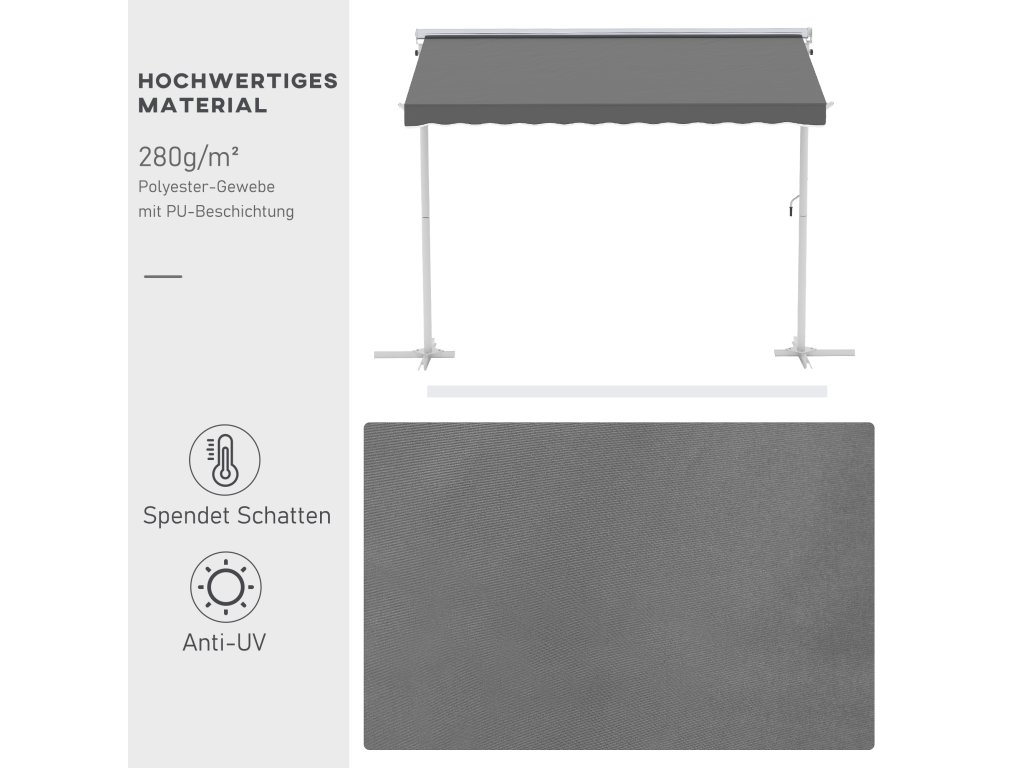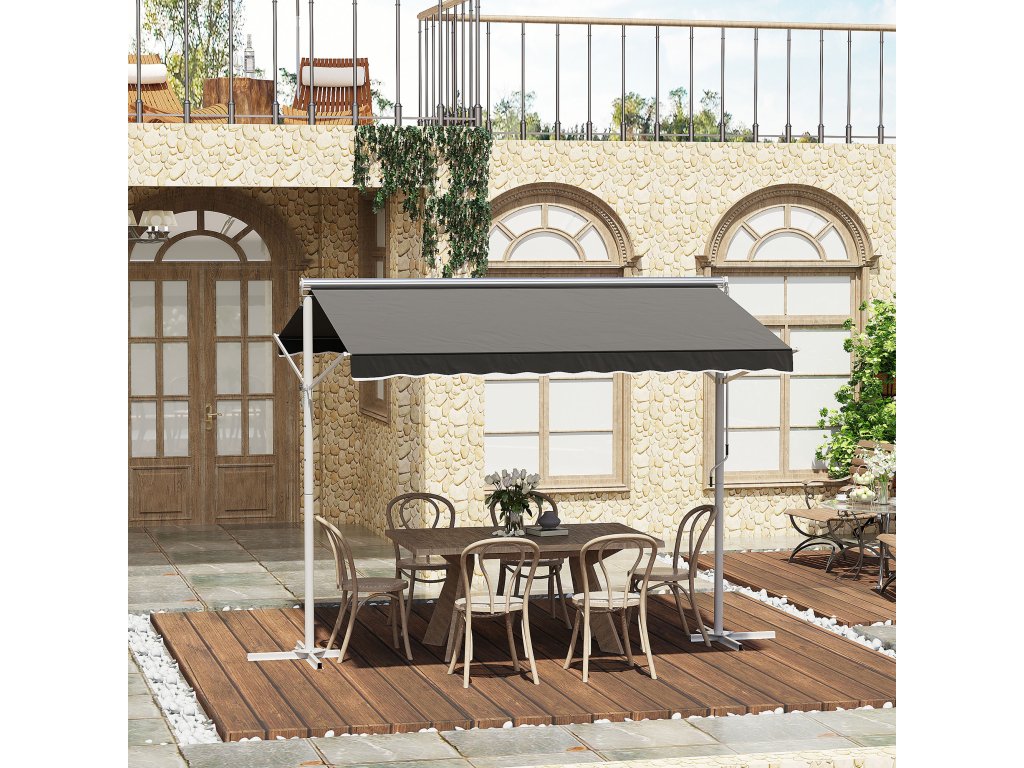 Stojící zahradní markýza Outsunny 3x3m se sklopným ramenem a klikou, šedá markýza na terasu pro ochranu před sluncem a volný čas | Aosom.de