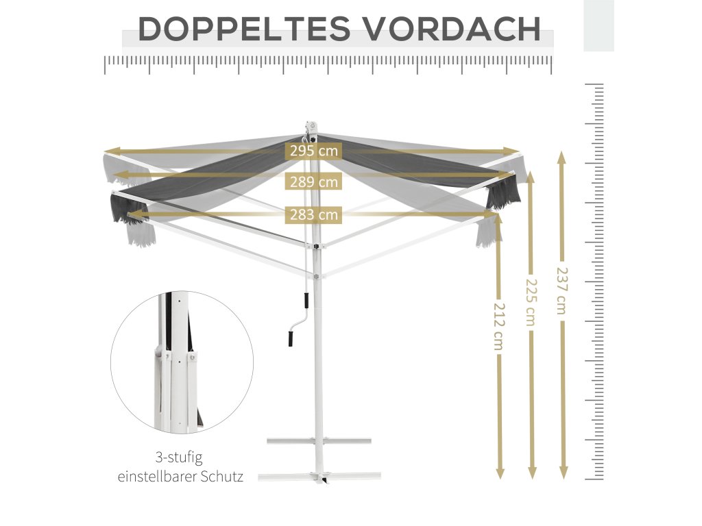 - ✔ Stojící markýza pro zajištění stínu na zahradě, dvoře, terase a dalších venkovních plochách