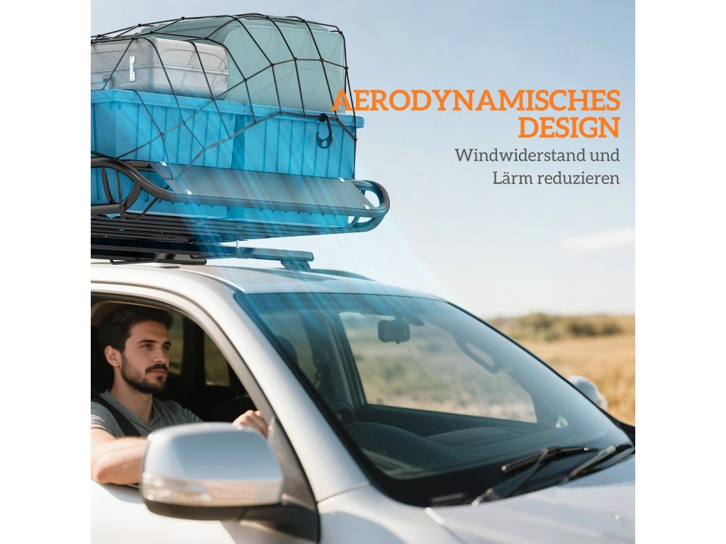 - Vysoká nosnost s větrným deflektorem: Střešní koš SUV z lakované oceli, nosnost až 150 kg, odolný proti korozi a opotřebení. Integrovaný větrný deflektor snižuje odpor vzduchu a hluk při jízdě.