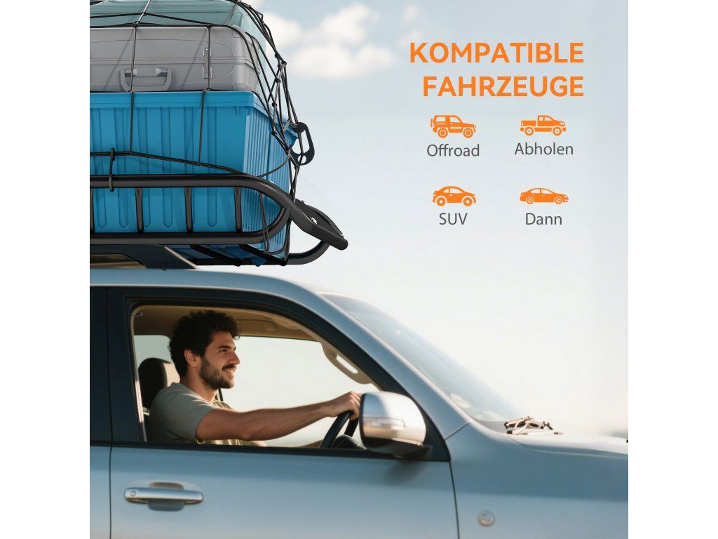 - Design vhodný na cesty: Tento střešní nosič s košíkem přepraví objemné nebo nepravidelné předměty, jako je kempinkové vybavení, kufry, jízdní kola nebo příslušenství ke kajakům - ideální na cesty a rodinné dovolené.