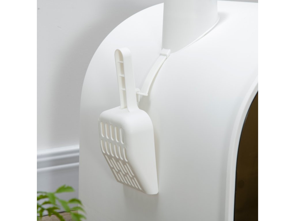 Tato kočičí toaleta od společnosti PawHut poskytuje vaší kočce příjemné soukromí a zajišťuje jí pohodlí při vykonávání jejích potřeb. Dvířka s hladkým chodem a dodávaný vzduchový filtr zabraňují šíření nepříjemných pachů. Čištění je obzvláště snadné díky výsuvné vaničce a dodávané lopatce na stelivo. Příjemné pastelové barvy a rafinovaný tvar ubikace se navíc hodí téměř ke každému stylu interiéru.