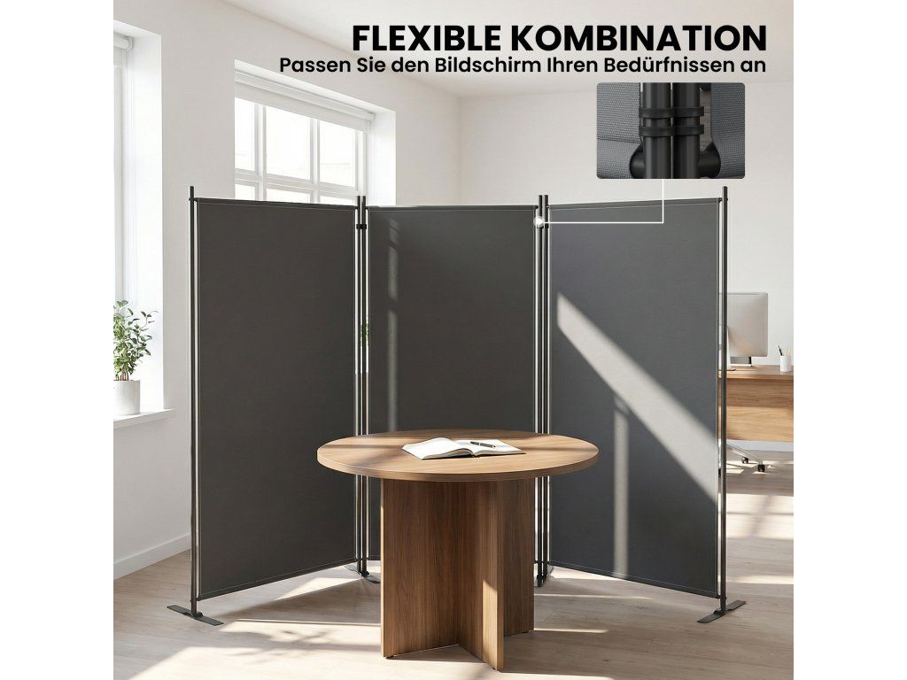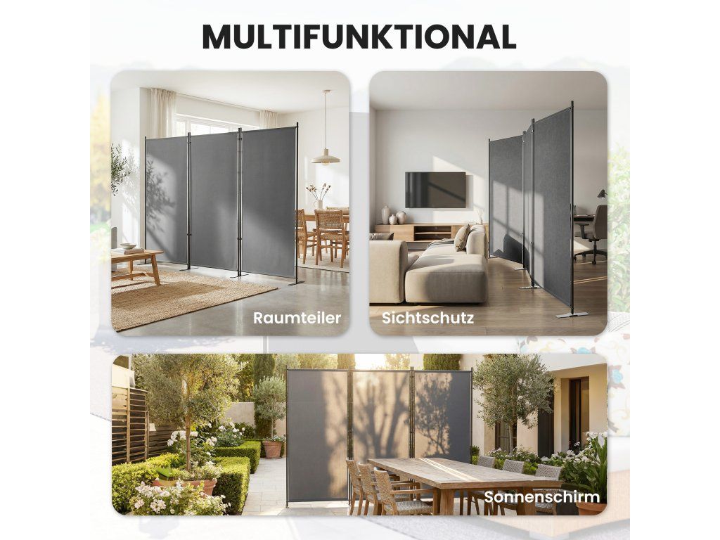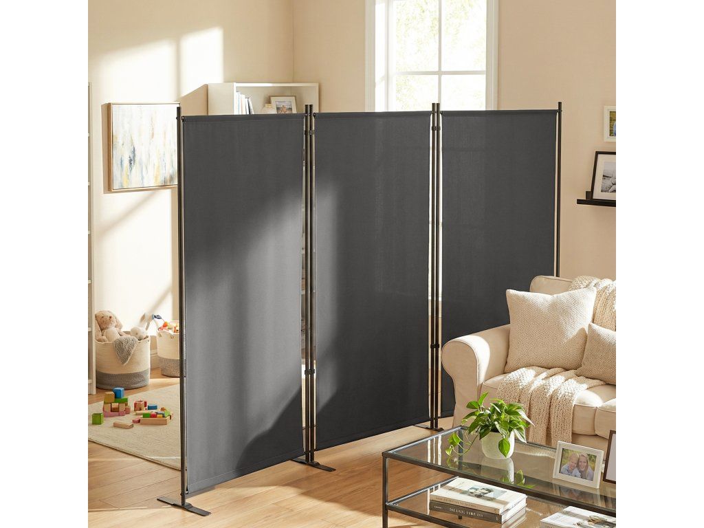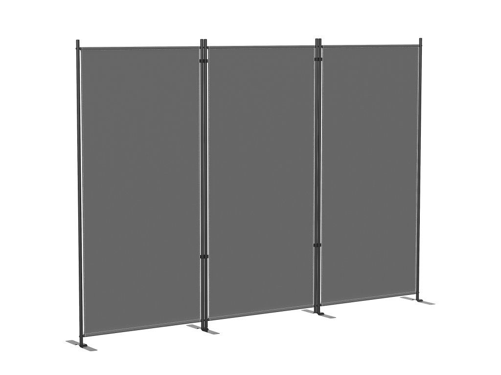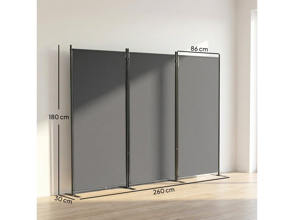 Trojdílný paraván 260 x 30 cm volně stojící Paraván z kovu, venkovní rozdělovač místností tmavě šedý