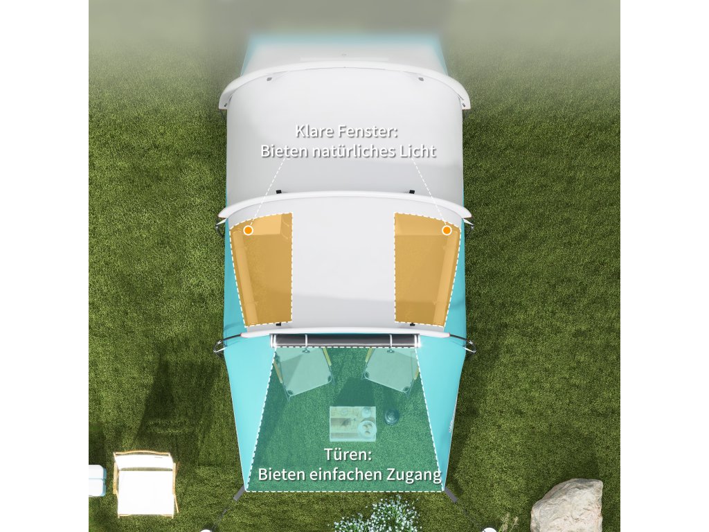 - Světlem zalitý kempinkový stan: Užijte si světlý interiér díky průhledným bočním oknům, která maximalizují světlo a viditelnost, abyste se cítili jako doma, ať jste kdekoli