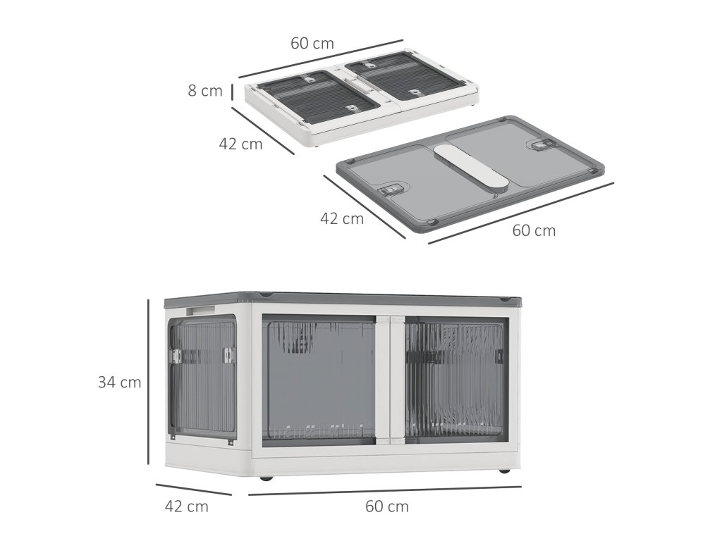 - Robustní konstrukce: Tento úložný box s kolečky je vyroben z pevného a bezpečného materiálu PP a nabízí robustní konstrukci a zaoblený design rohů pro zajištění bezpečnosti. Průhledné otevírání umožňuje okamžitý přístup k předmětům, což šetří čas a zvyšuje produktivitu. Celkové rozměry: 60 Š x 42 H x 34 V cm. Rozměry ve složeném stavu: 60 Š x 42 H x 8 V cm. Vnitřní rozměry: 56W x 38,5D x 32H cm. Nosnost: 50 kg (uvnitř), 30 kg (nahoře).
