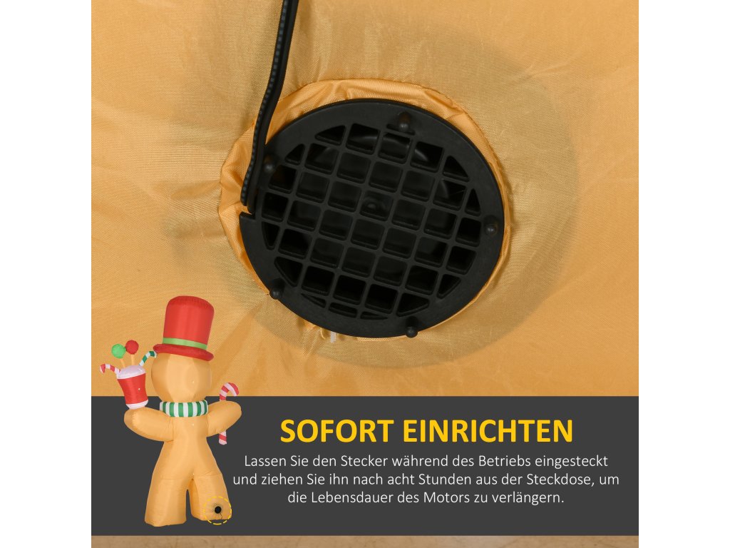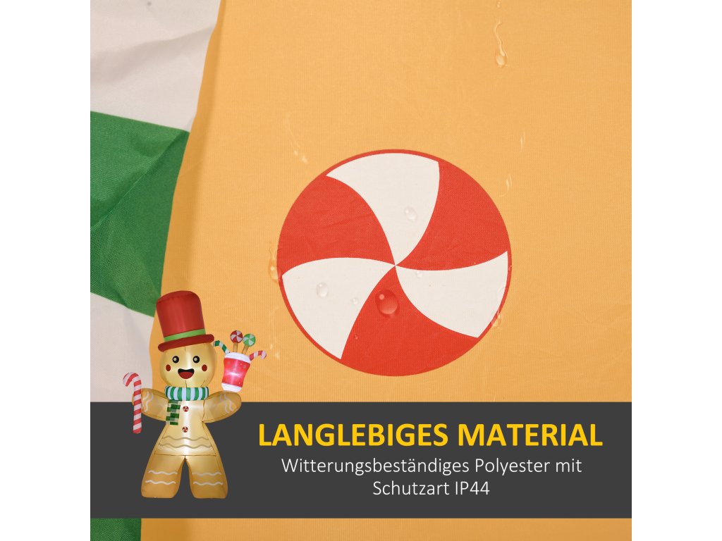 - Vnitřní LED osvětlení: Nafukovací perník svítí zevnitř a osvětluje své okolí. Vánoční dekorace vytvoří na vaší zahradě veselou a vánoční atmosféru