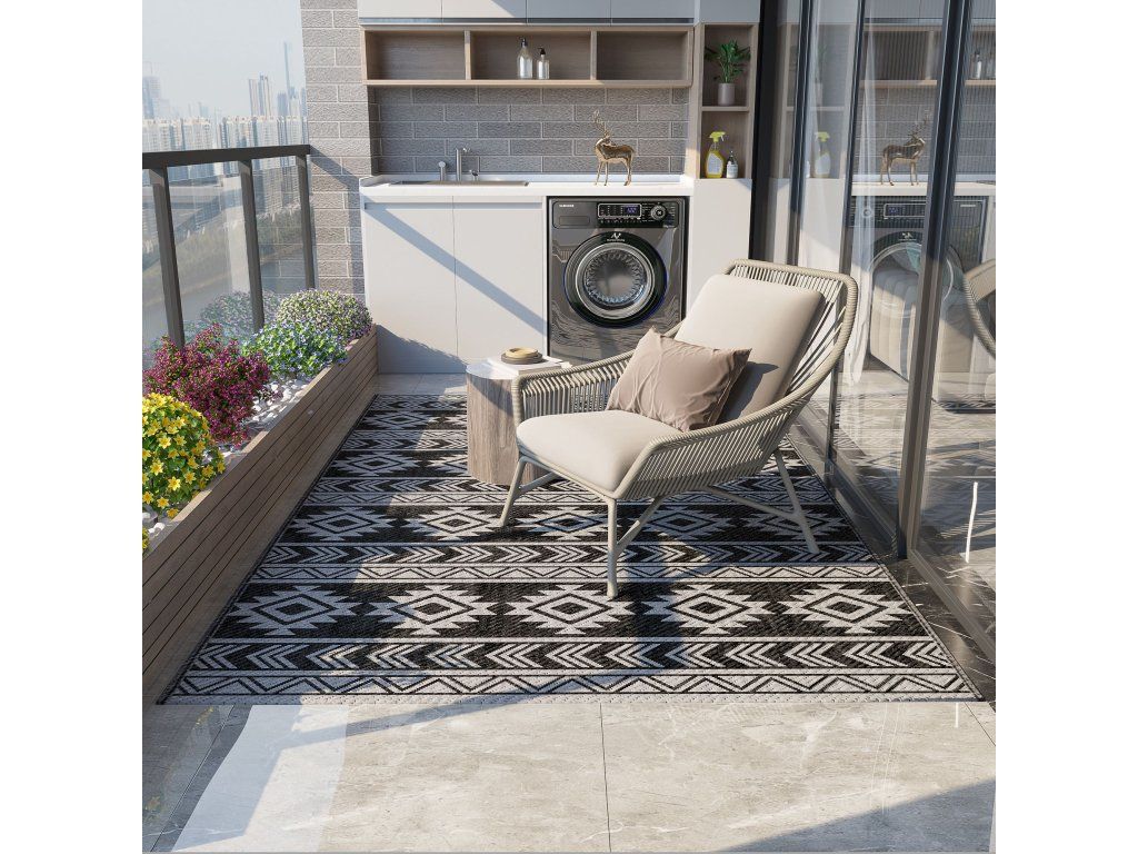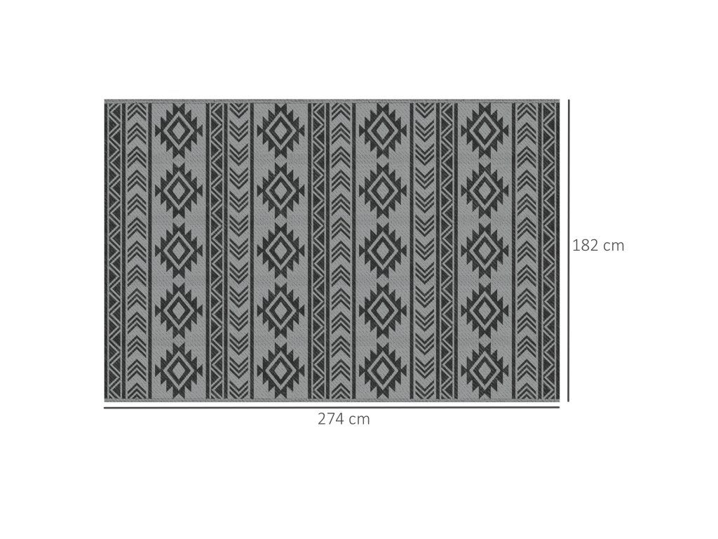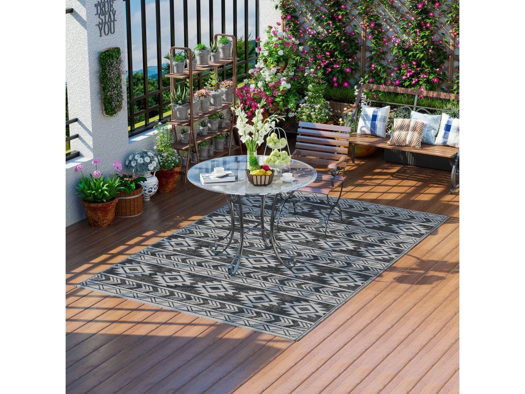 Venkovní koberec Outsunny, voděodolný plastový koberec, oboustranný balkonový koberec, na terasu, černý+šedý, 182 x 274 cm | Aosom