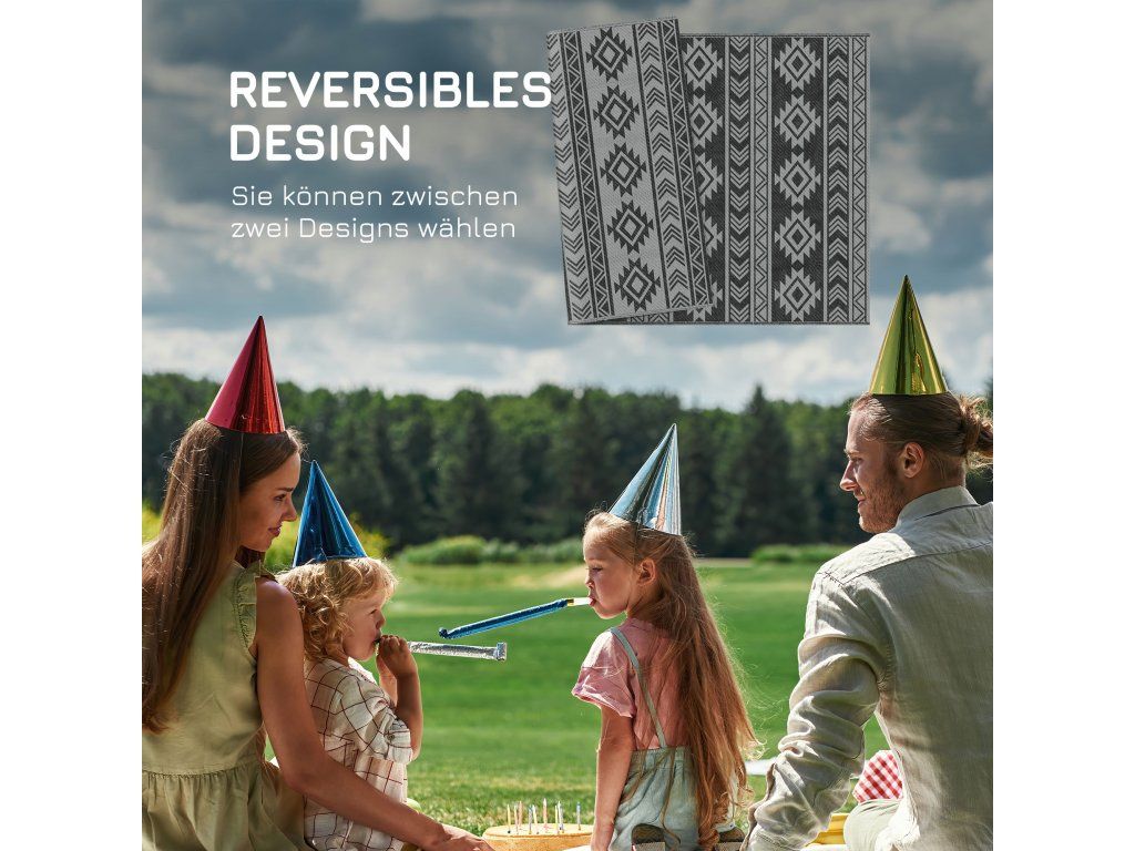 - Lze použít na obou stranách: Každá strana koberce má jinou barvu, takže koberec můžete snadno otočit a zpestřit tak svůj venkovní prostor.