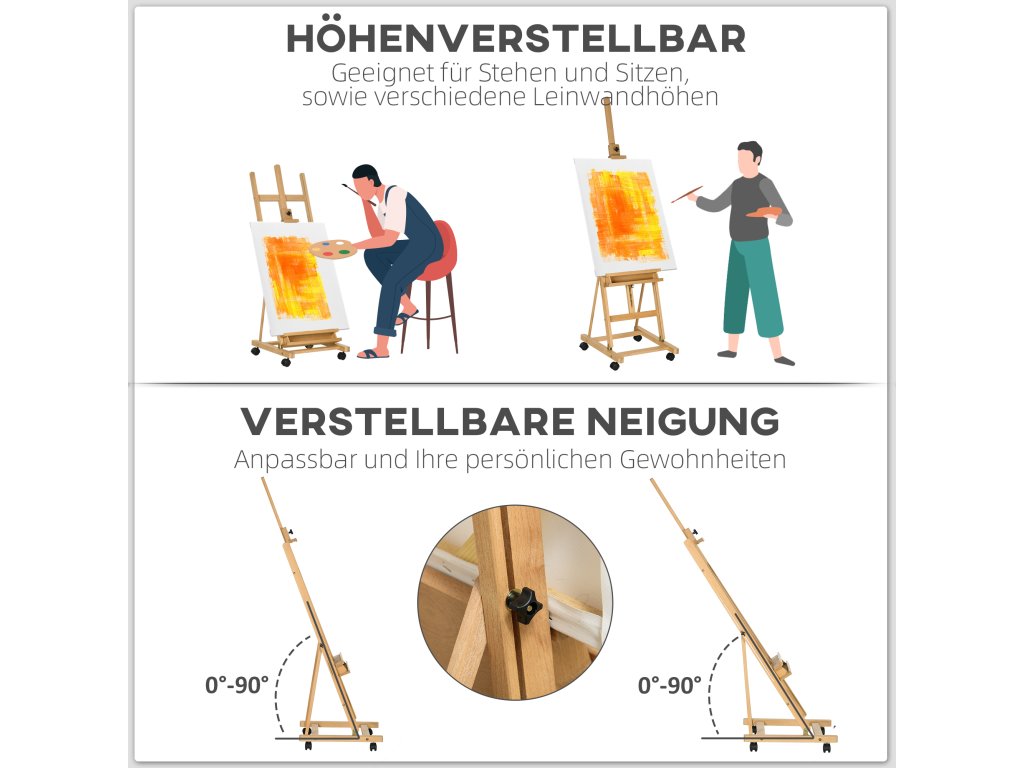 Vinsetto easel Stojanový stojan z bukového dřeva skládací s kolečky výškově nastavitelný stojan na plátno pro umělce a prezentace | Aosom.de