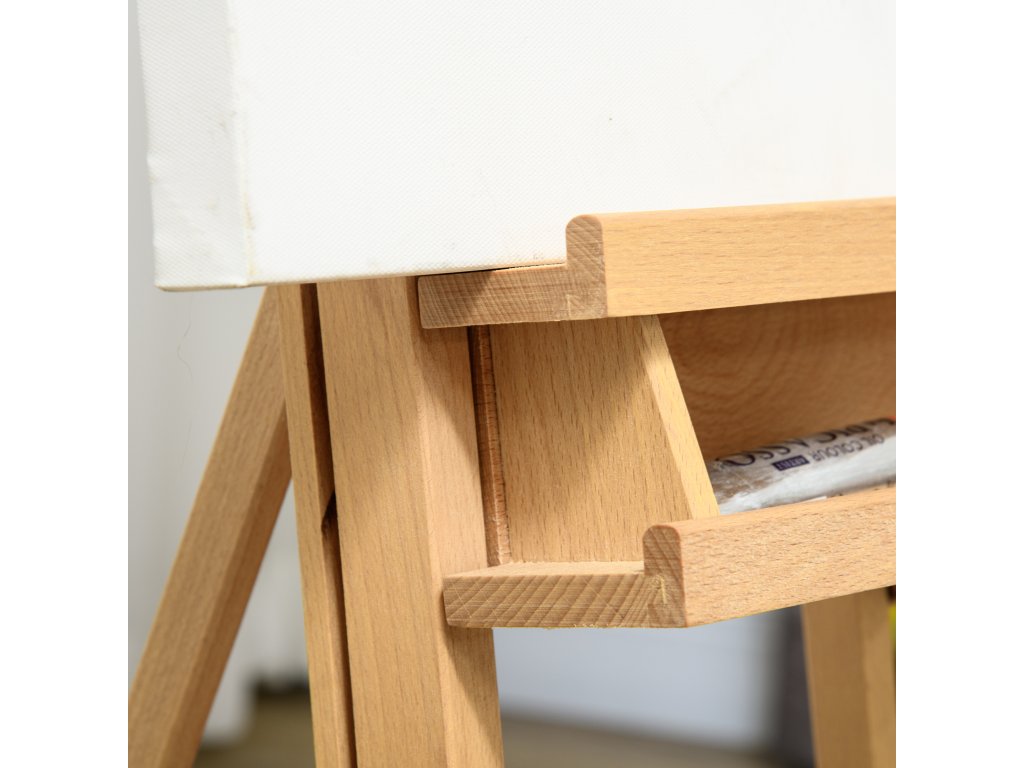 - Rám z bukového dřeva: Tento umělecký stojan z bukového dřeva se speciálně upraveným povrchem má odolný, hladký a strukturovaný design pro pohodlné uchopení. Konstrukce trojnožky zajišťuje vynikající stabilitu.