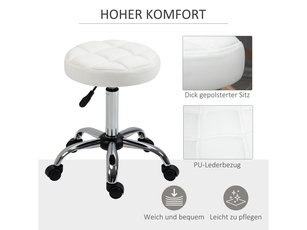 Vinsetto pojízdná stolička Výškově nastavitelná otočná pracovní stolička do kanceláře a salonu, imitace kůže, bílá Ø35,5 x 51-67 cm | Aosom.de