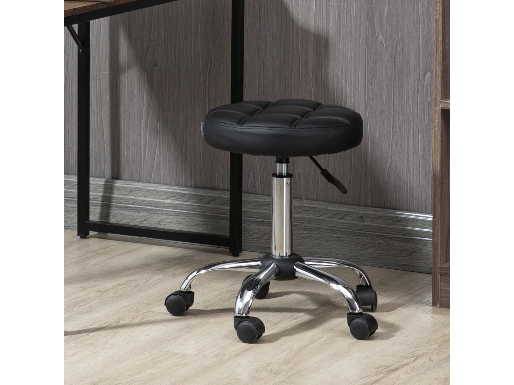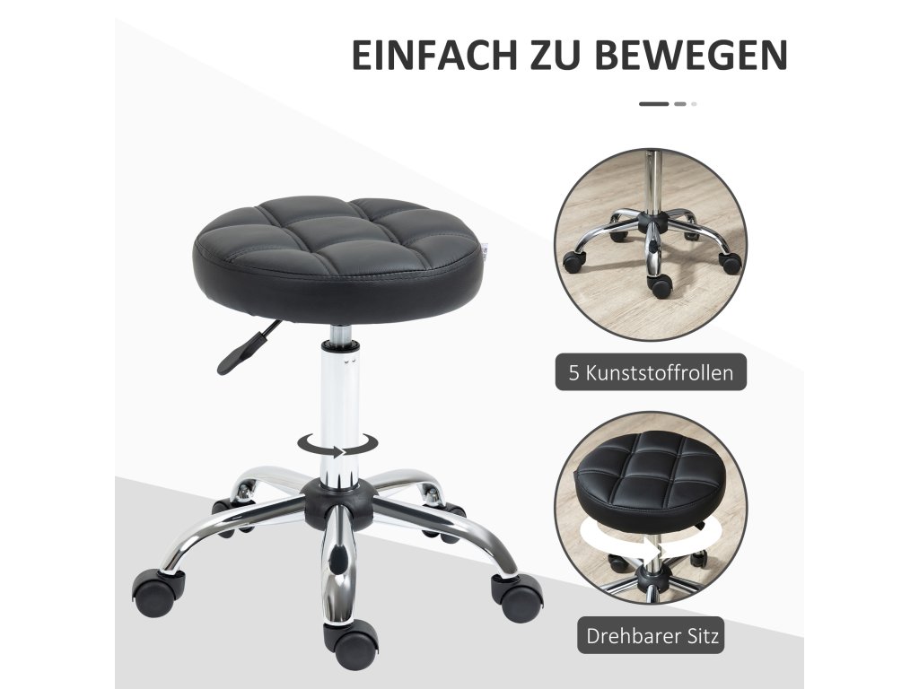 Vinsetto Roll Stool Výškově nastavitelná otočná pracovní stolička černá Ø35,5 cm, umělá kůže pro kancelář a salon 51-67 cm | Aosom.de