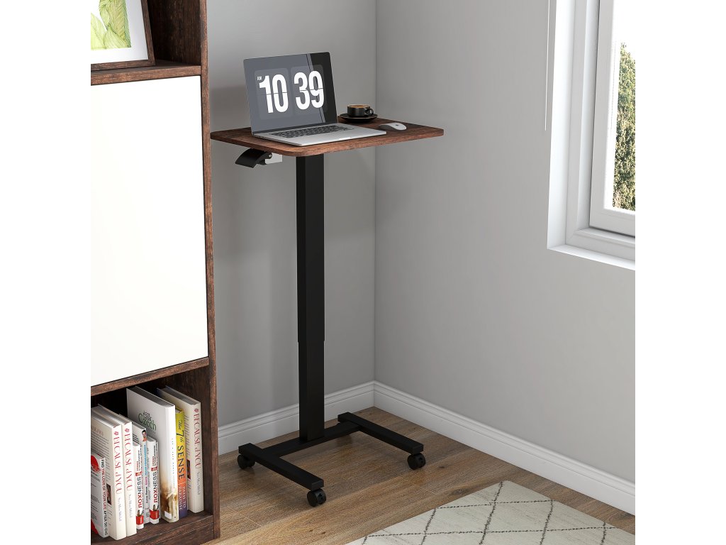 Vinsetto Výškově nastavitelný stůl na notebook, se 4 kolečky, 2 brzdy, 65 cm x 48 cm x 108 cm, s ruční klikou, brzda, dřevotříska, rustikální hnědá| Aosom