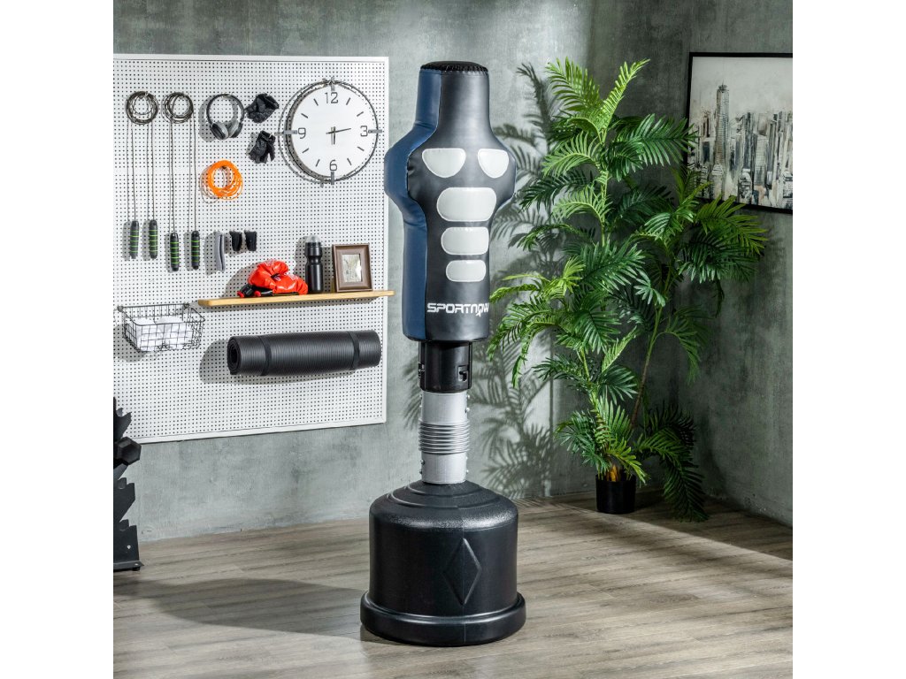 - Stabilní stojan: Robustní základnu lze naplnit vodou nebo pískem a vytvořit tak bezpečný a vyvážený stojan. Díky tomu se boxovací figurína nikdy nevyvrátí, bez ohledu na to, jak často do ní udeříte nebo kopnete.