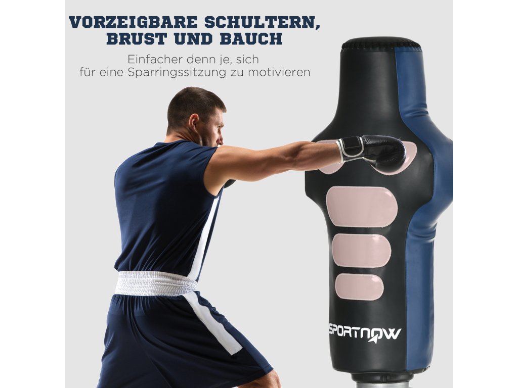 Trénink boxu je výzvou pro celé tělo, takže můžete posílit svaly, zlepšit koordinaci a efektivně zvýšit svou kondici. Tato realisticky tvarovaná boxovací figurína od společnosti SPORTNOW je však lepší než beztvarý boxovací pytel. Pružný, robustní materiál a barevně odlišené úderové plochy vám umožní trénovat efektivně a šetrně k vašim kloubům. Díky pevné základně se figurína nikdy nevymkne, ať už kopete nebo mlátíte jakkoli silně!