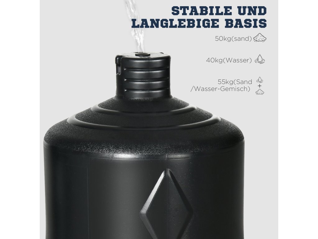- ✔ Základnu lze naplnit pískem, vodou nebo směsí obojího pro zvýšení stability