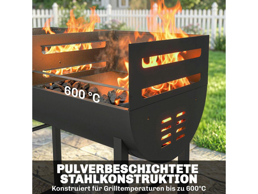- Vysoce kvalitní práškově lakovaná ocel: Tento gril na dřevěné uhlí je vyroben z robustního 0,9mm kovu s žáruvzdorným práškovým nátěrem a odolává teplotám až 600 °C. Jeho pevná konstrukce zaručuje dlouhou životnost a spolehlivý výkon při častém venkovním grilování.