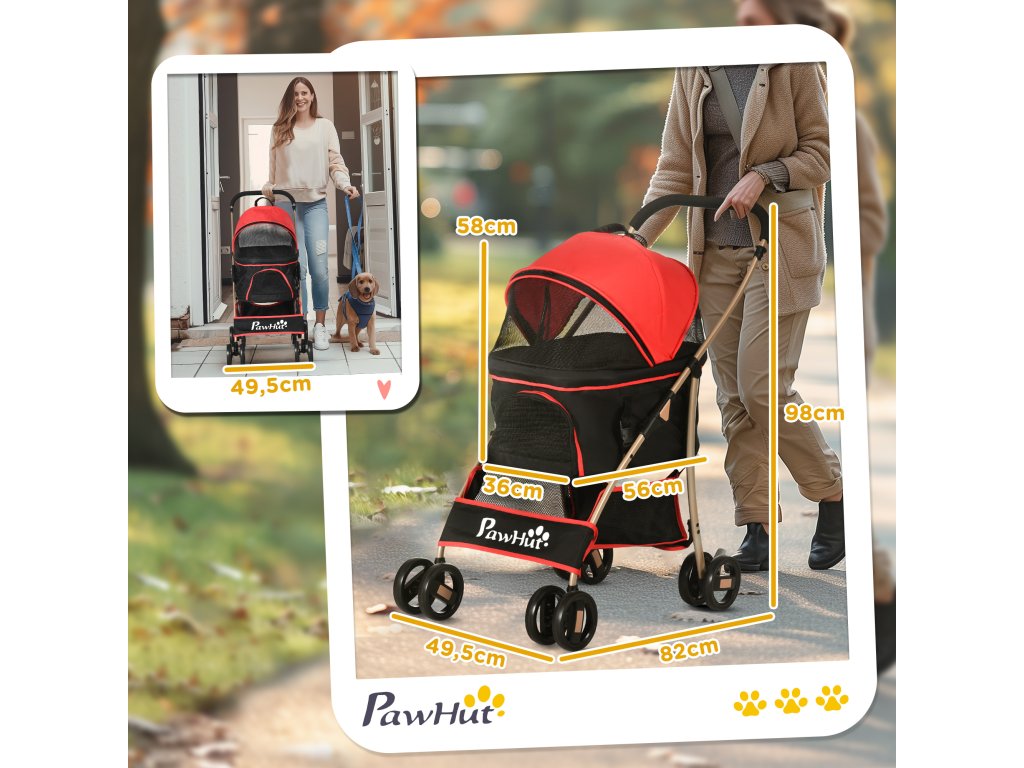 Potřebujete skvělý kočárek pro psa nebo přepravku pro kočku, abyste mohli vzít svého chlupatého přítele s sebou? Pak se podívejte na tento kočárek pro psy PawHut! Tento jedinečně navržený kočárek pro psy je ideální pro majitele domácích mazlíčků, kteří se svými psy hodně cestují. To nejlepší na něm - tento vozík pro psy lze přeměnit na přepravní tašku. Vozík má přídavný košík, do kterého můžete uložit příslušenství. Hladce jezdící kolečka zajišťují, že si jej můžete vzít s sebou, ať už jdete kamkoli.