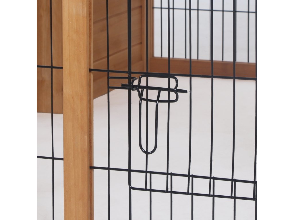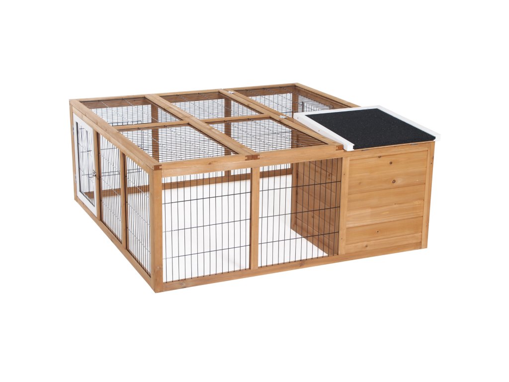 Tato pohodlná bouda pro malá zvířata od společnosti PawHut nabízí vašim mazlíčkům bezpečný prostor k odpočinku a zároveň dostatek pohybu. Malý domeček slouží jako ochranné útočiště. Víko boudy i domečku lze snadno otevřít, takže můžete boudu bez námahy vyčistit nebo svá malá zvířata pohodlně nakrmit. Vaše domácí zvířata se budou v tomto výběhu okamžitě cítit jako doma!