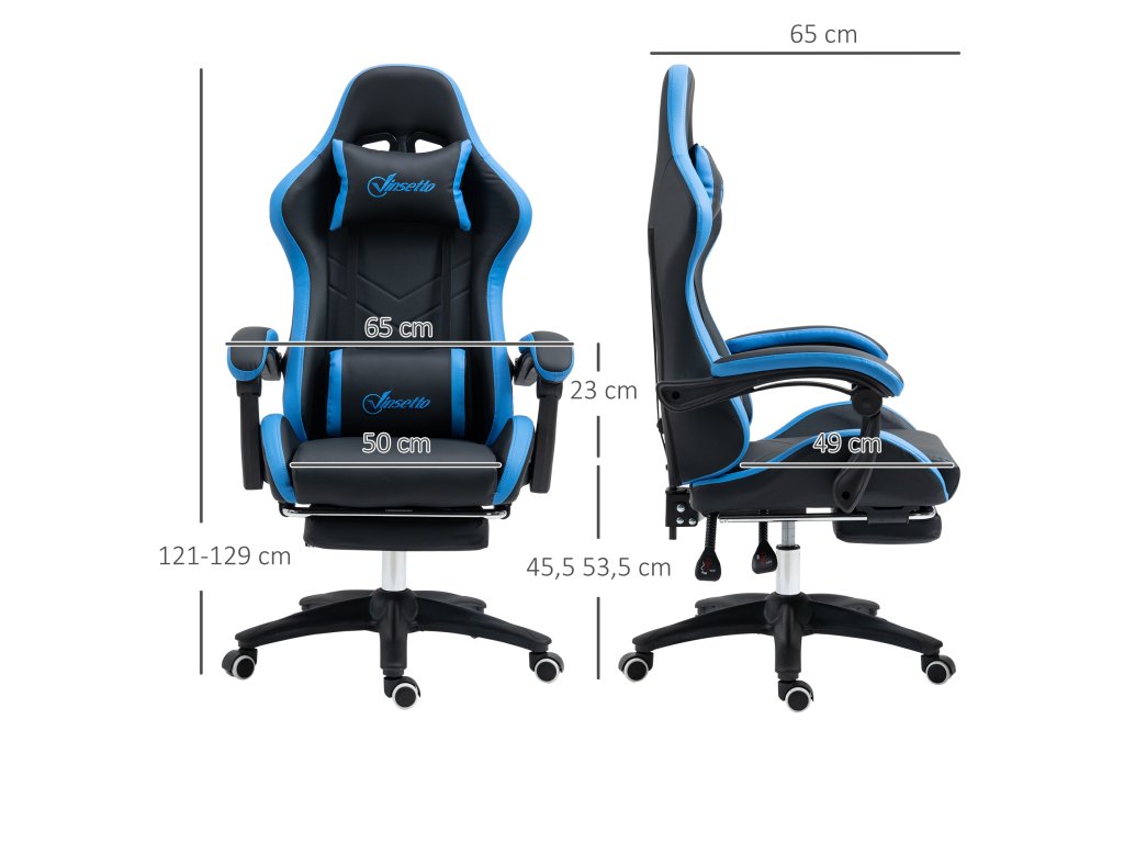 Výškově nastavitelné herní křeslo Vinsetto s bederním polštářem a opěrkou hlavy, nastavitelné područky, funkce naklápění až do 120 kg, modročerná | Aosom.de