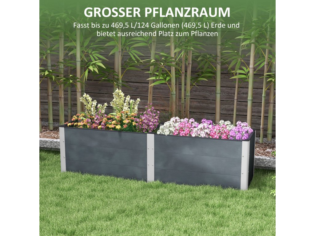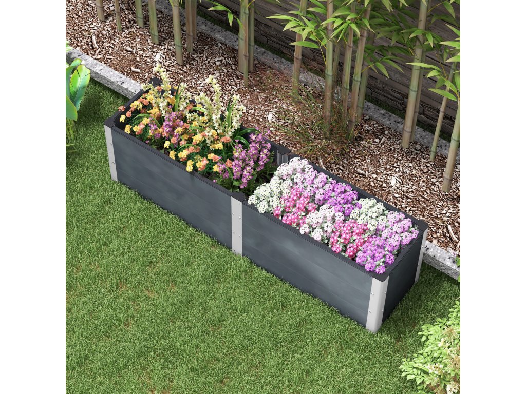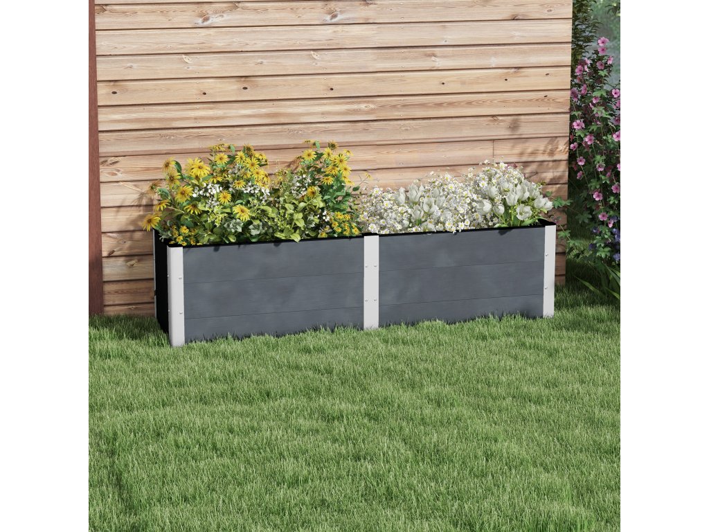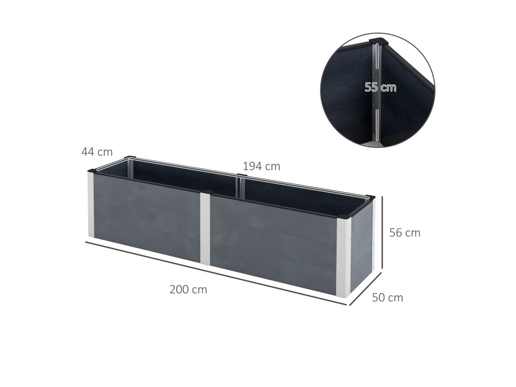 Vyvýšený záhon Outsunny s otevřeným dnem, šedý květinový a sadbovačový truhlík, záhon na zeleninu a bylinky 200x50x56 cm pro zahradu a balkon |