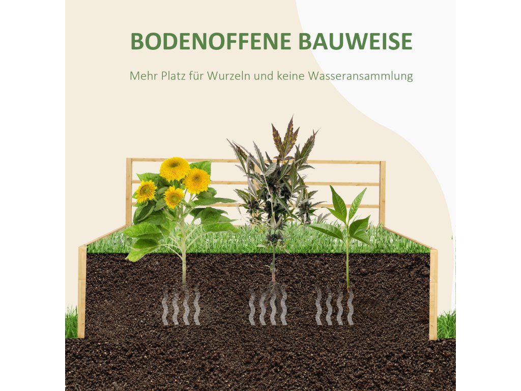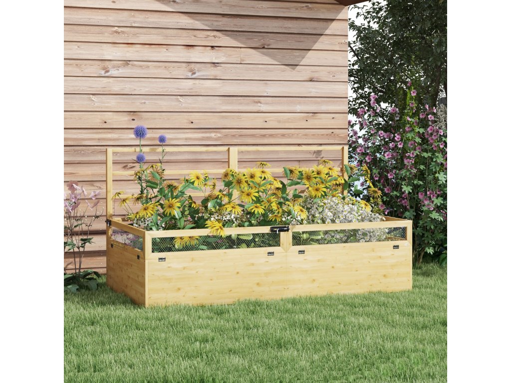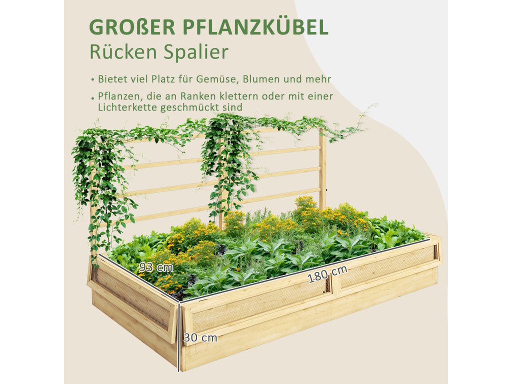 Vyvýšený záhon Outsunny s podpěrou pro šplhání, bylinkový záhon, dřevěný truhlík, truhlík na květiny na zahradu, balkon, přírodní dřevo, 183 x 98,5 x 95 cm | Aosom