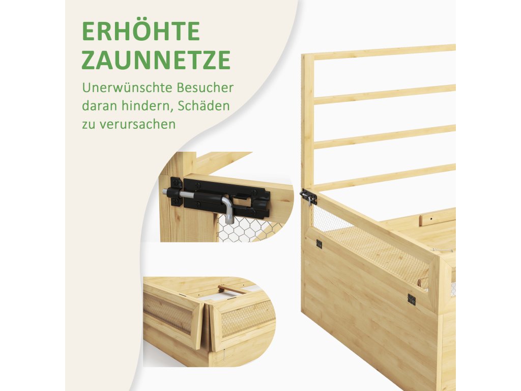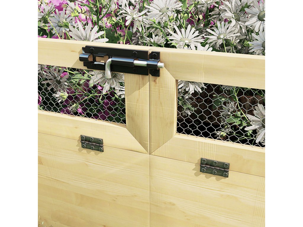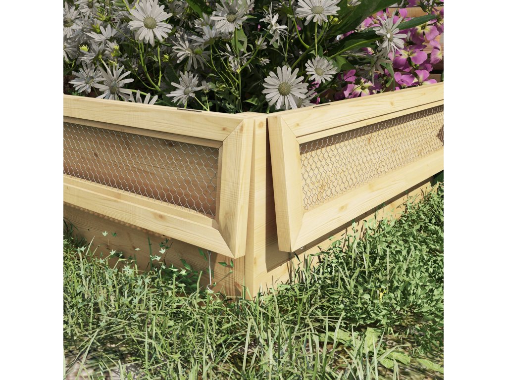 - Dřevěný rám: Vyroben z masivního jedlového dřeva a nalakován. Vyvýšený květináč je vhodný pro spolehlivé venkovní použití