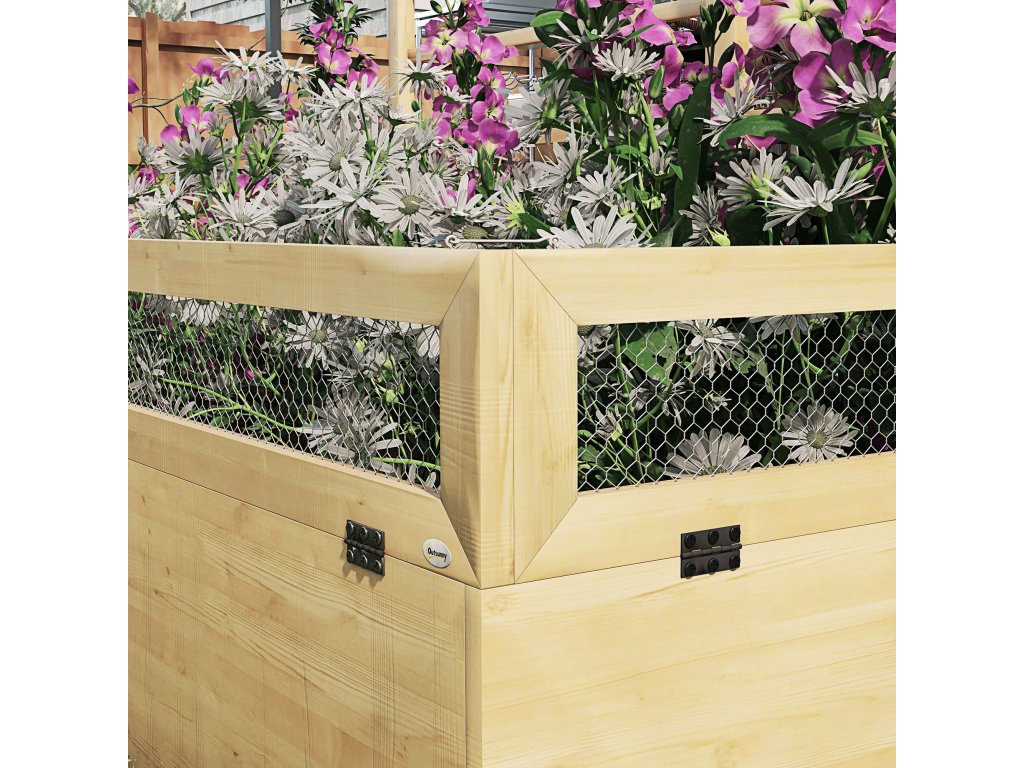 Zahradní květináče nabízejí prostor pro rostliny prakticky kdekoli. Tento vyvýšený květináč pro zahradu od společnosti Outsunny toho umí ještě více: má také mřížku pro popínavé rostliny, závěsné fotografie nebo LED světla, která dotvářejí atmosféru vaší zahrady. Konstrukce z jedlového dřeva je dostatečně robustní pro venkovní použití. Vyvýšená síť zabraňuje přístupu nečistot a škůdců. Pomocí květináče Outsunny s mříží vytvoříte všestranný a prosperující zahradní prostor.