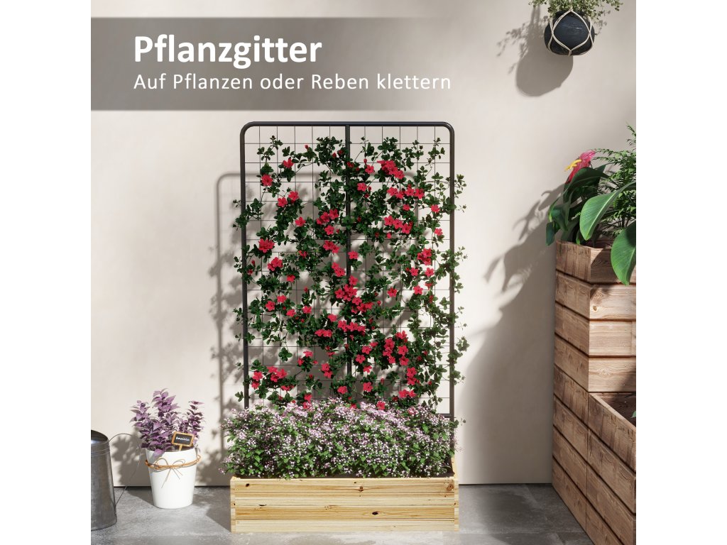Tato kombinace vyvýšeného záhonu a mříže dodá vaší zahradě kouzlo italské vinice. Pěstujte vinnou révu a jiné popínavé rostliny - s tímto uměleckým dílem budou skvěle vypadat všechny popínavé rostliny. Vyvýšená konstrukce chrání před hlodavci. Otvory pro odvod vody na dně zeleninového záhonu zajišťují bezpečný obsah vody a udržují půdu prodyšnou. Rozviňte své zahradnické dovednosti s tímto vyvýšeným květináčem od společnosti Outsunny.
