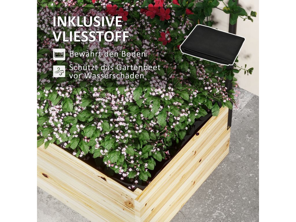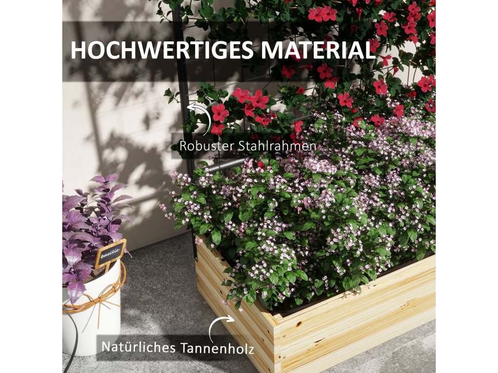 Vyvýšený záhon Outsunny s podpěrou pro šplhání, truhlík z přírodního dřeva, bylinkový záhon a květinový truhlík pro zahradu a balkon, 80 x 38 x 145 cm | Aosom.de