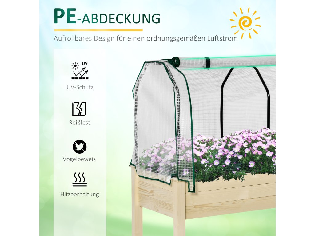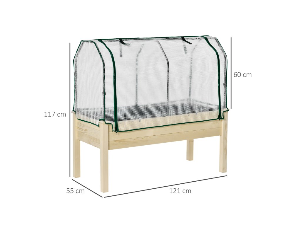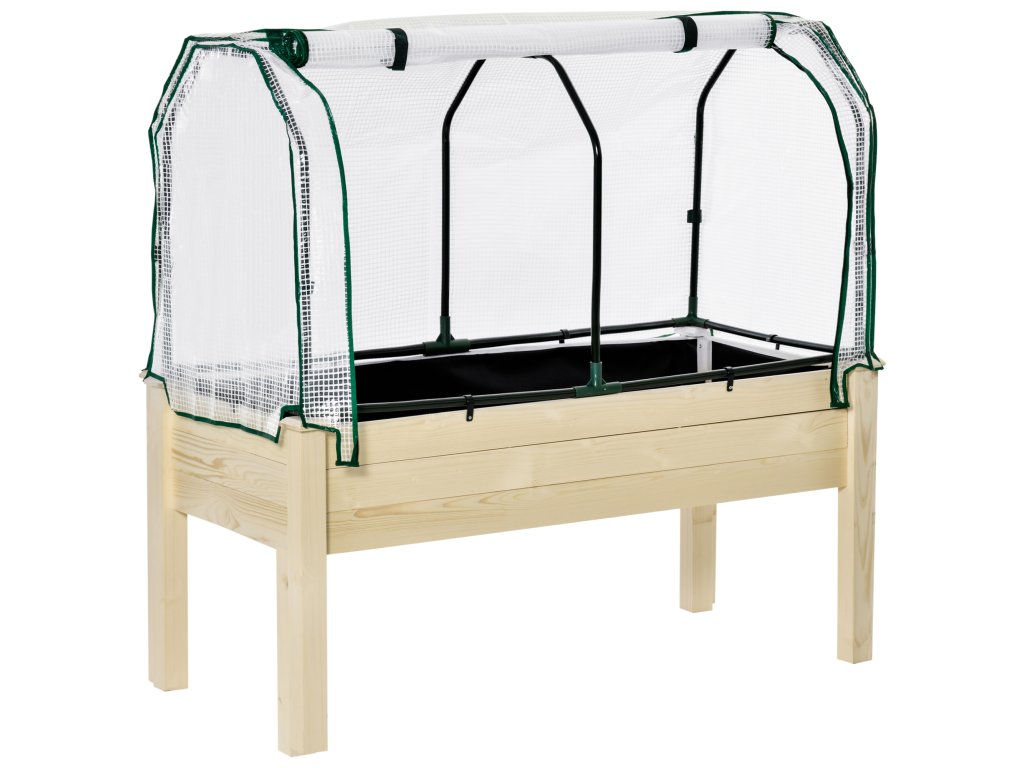 - Robustní konstrukce: Spodní rám truhlíku z masivního dřeva poskytuje pevnou oporu. Stabilní a odolné jsou také oblouky ocelového rámu krytu.