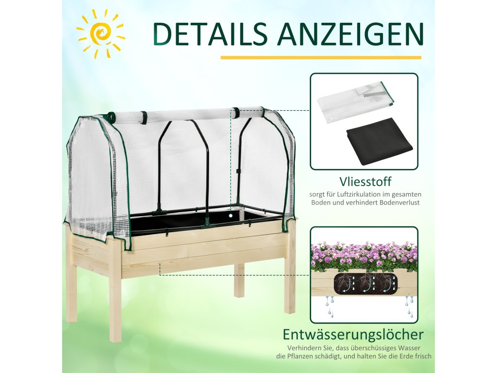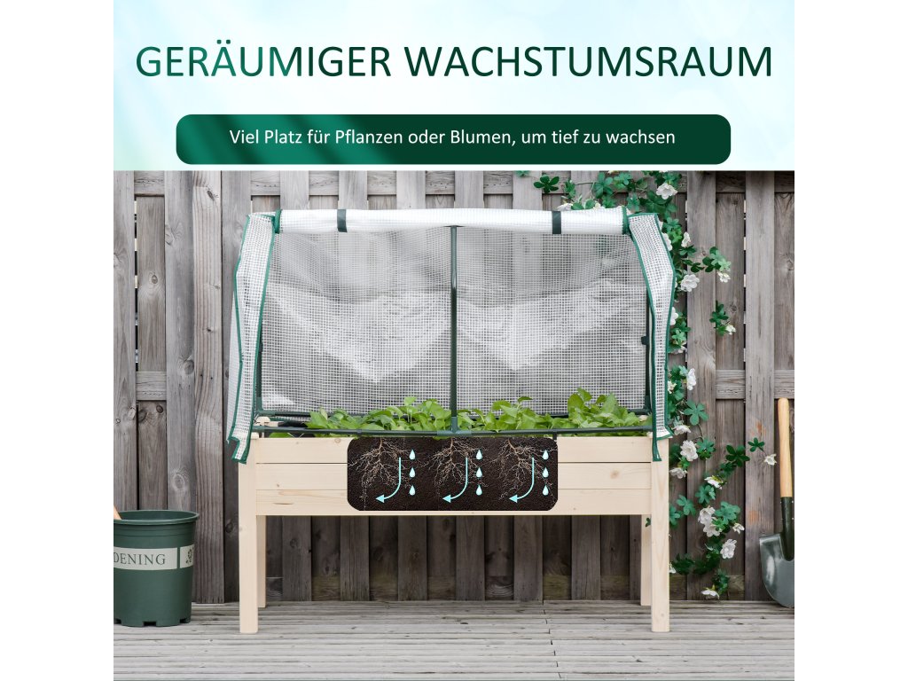 Vyvýšený záhonový rám Outsunny 121x55x117 cm z jedlového dřeva s ochrannou fólií a drenážními otvory, voděodolný, pro zahradu a balkon v přírodní barvě | Aosom.de
