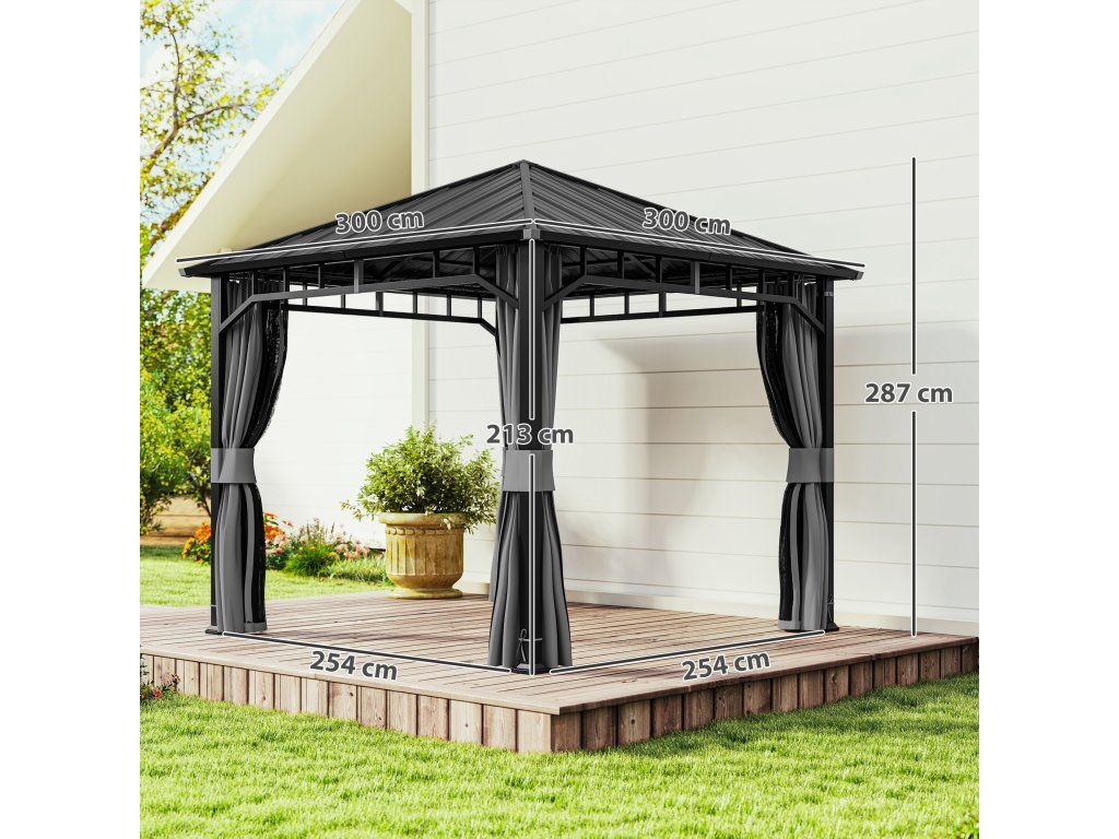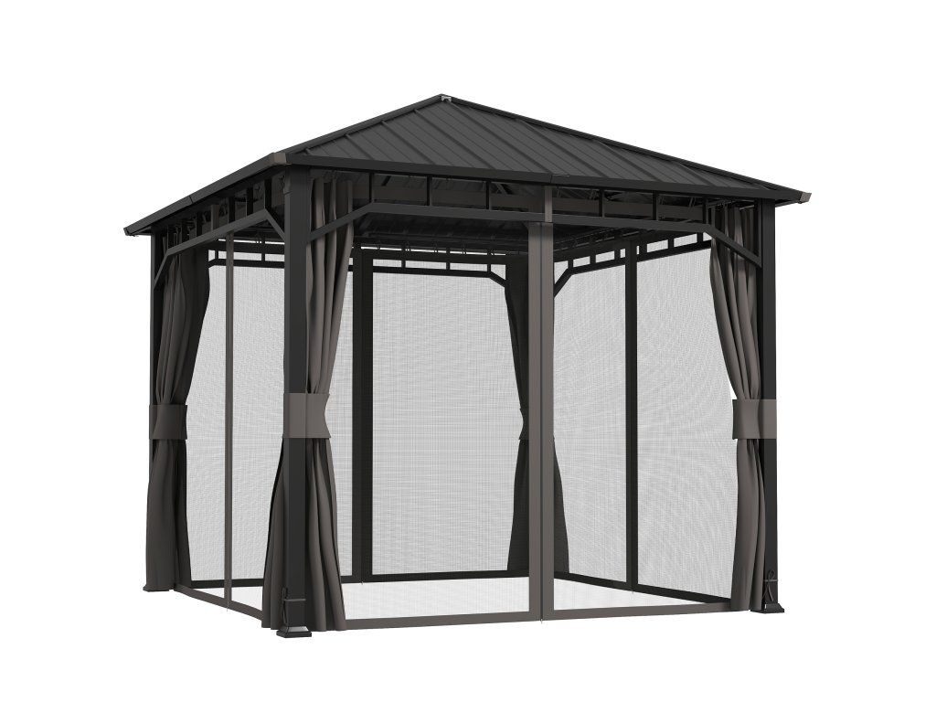 Zahradní altán 3×3 m s pevnou střechou, kovový pavillon, bočnice, moskytiéra, zimní odolnost, tmavě šedý