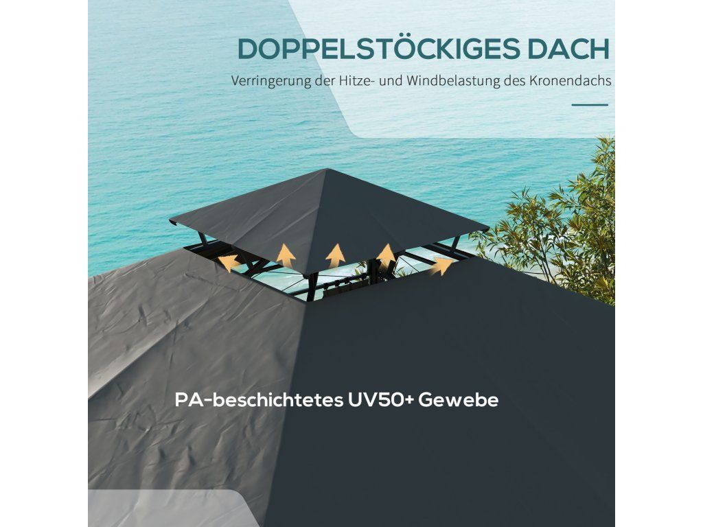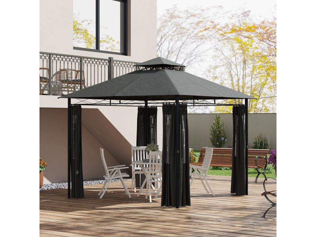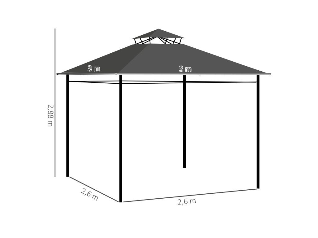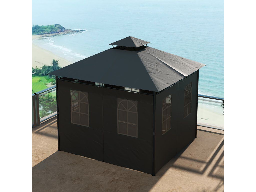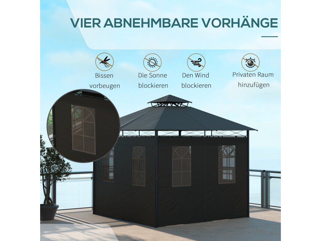 Zahradní altán Outsunny 3 x 3 m s boční stěnou a dvojitou střechou Kovový stan odolný proti povětrnostním vlivům v tmavě šedé barvě pro zahradní párty | Aosom.de