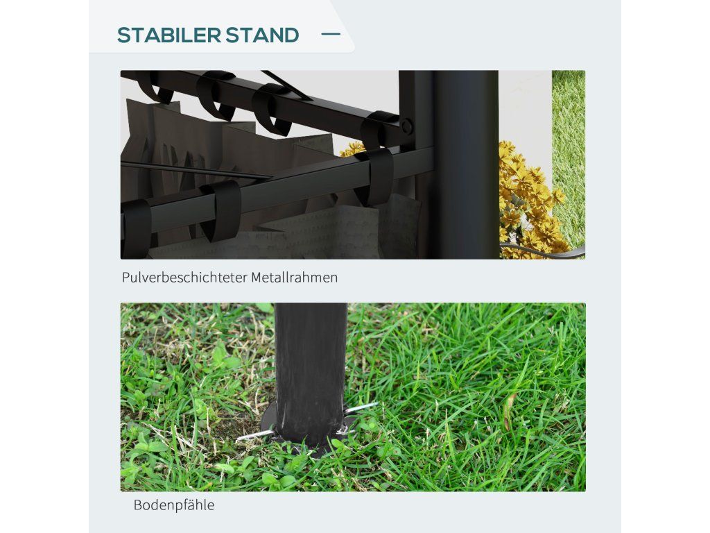 Outsunny je pavilon, ve kterém může trávit čas mnoho lidí. Má rozměry 2,95 x 2,95 metru, poskytuje dostatek stínu a chrání také před deštěm. Jednoduchým posunutím dodaných závěsů lze ztlumit světlo, pokud slunce příliš oslňuje. Zároveň zabraňují přístupu hmyzu. Prodyšný polyester je prodyšný. Takže se budete cítit pohodlně a nebudete se potit.