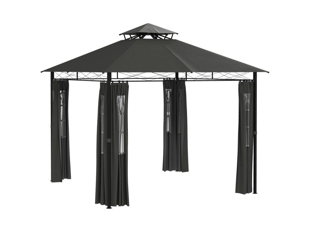 - Kovová konstrukce: Pavilon je vyroben z kovu, opatřen práškovou barvou a navržen pro dlouholeté používání. Pro zvýšení stability lze otvory v nohách provrtat kolíky nebo šrouby