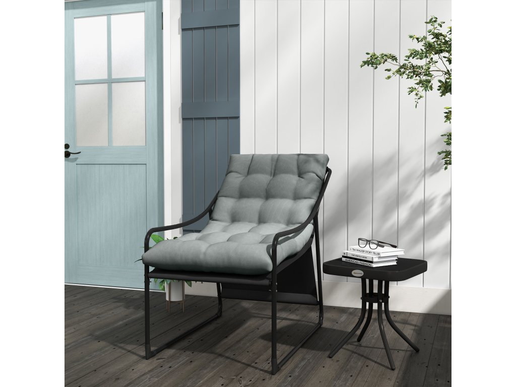 Zahradní křeslo Outsunny zahradní křeslo se silným sedákem, lounge křeslo s područkami do nosnosti 120 kg, pro zahradu a balkon, šedé | Aosom.de