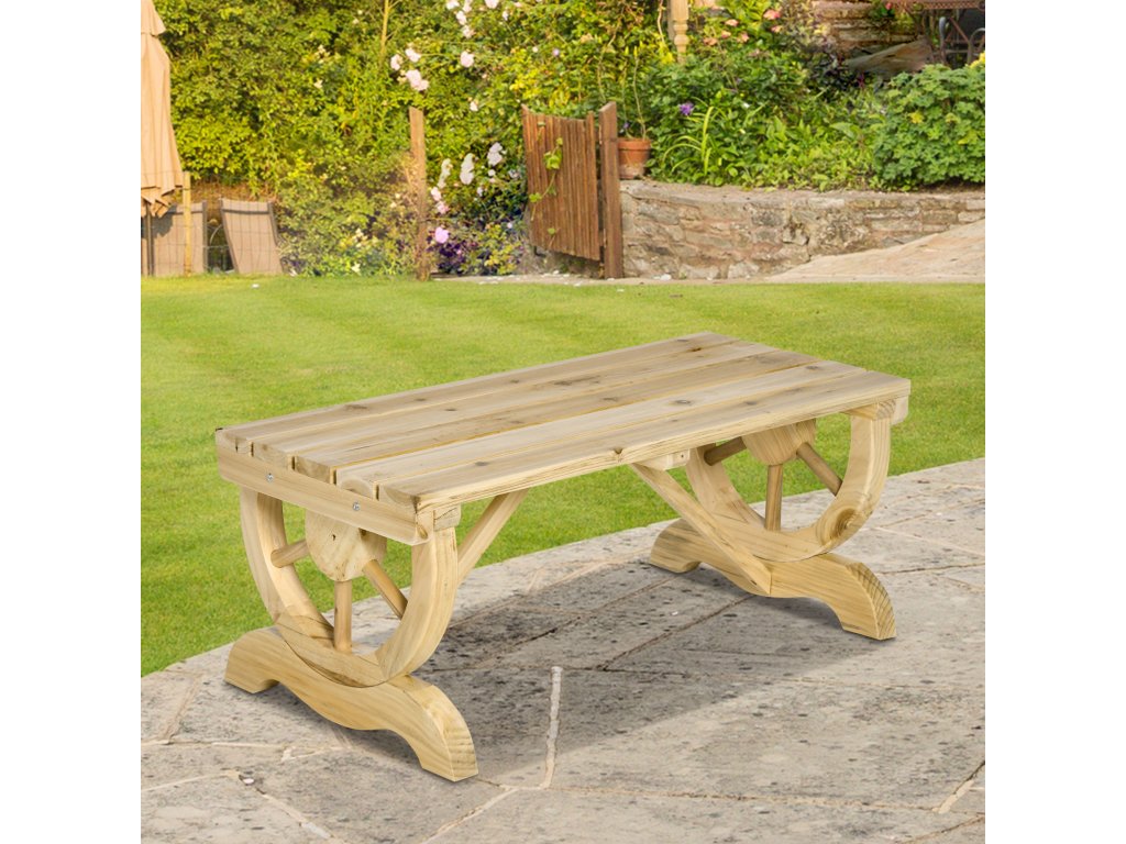 - RAFINOVANÁ KONSTRUKCE: Nohy této dřevěné zahradní lavice připomínají kola od vozu a dodají vašemu venkovnímu prostředí sofistikovaný nádech.
