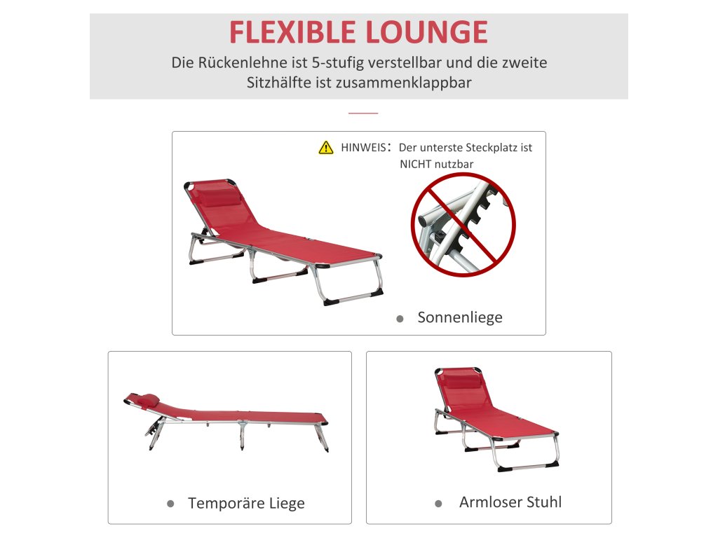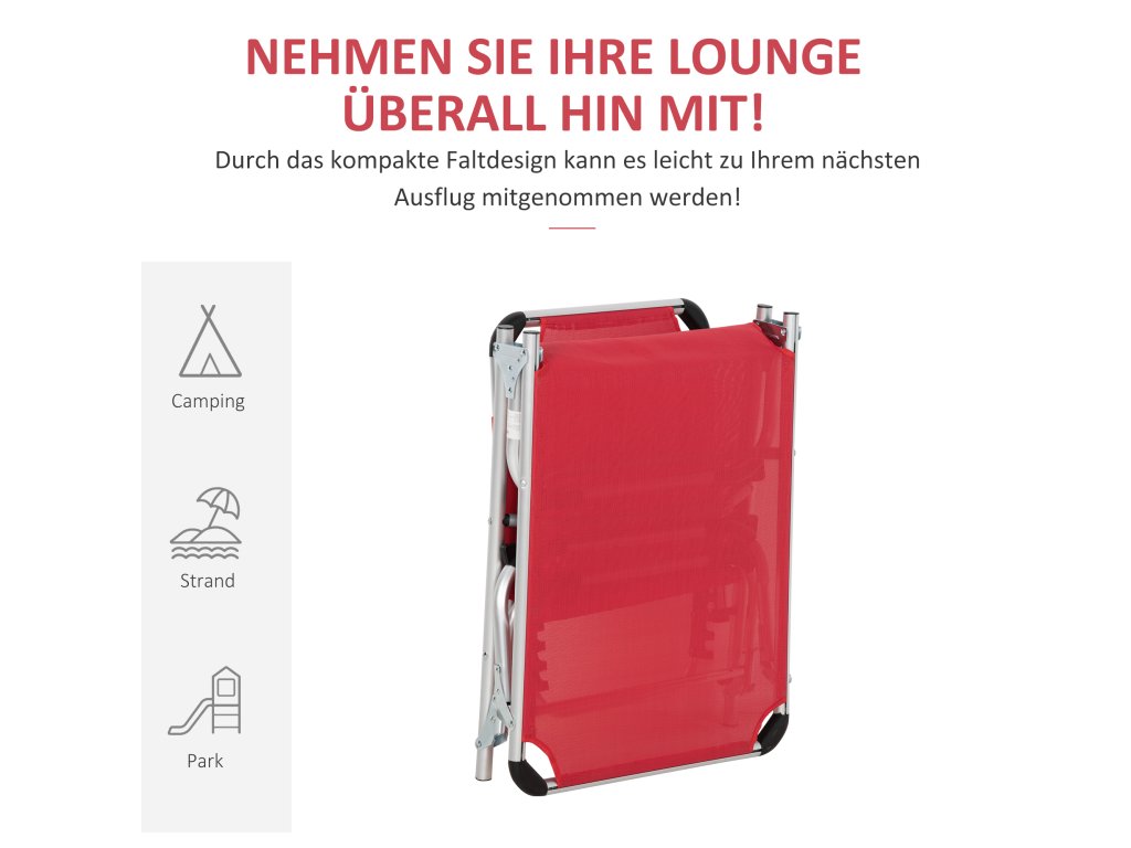 Zahradní lehátko Outsunny 5polohové nastavitelné skládací ergonomické lehátko se síťovinou červené 165 x 60 x 76 cm pro hodiny relaxace venku | Aosom.de