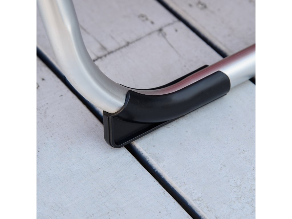 - STABILNÍ A BEZPEČNÉ: Hliníkový rám zaručuje stabilitu a plastové podložky pod nohy zabraňují sklouznutí a zároveň chrání nohy a podlahu před poškrábáním.