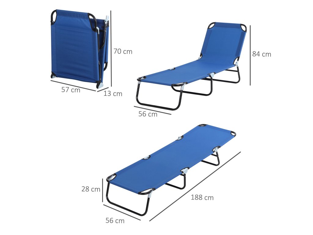 Zahradní lehátko Outsunny s nastavitelným opěradlem, ocel, modré, 188x56x28cm, ideální na zahradu a balkon | Aosom.de