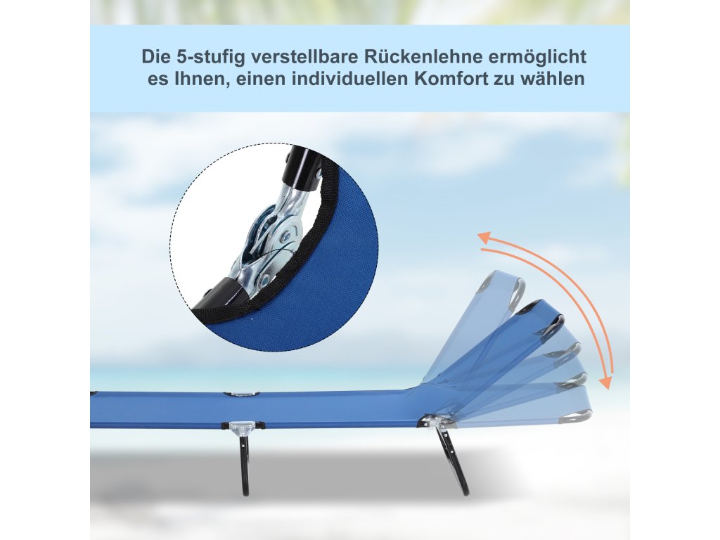 - ✔ Vyberte si ideální úhel opalování z pěti různých poloh opěradla