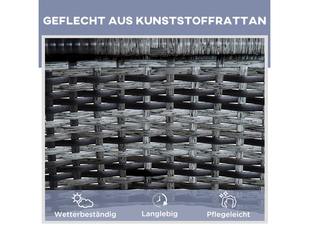 - ✔ Polyratanové obložení je robustní, odolné proti UV záření a povětrnostním vlivům